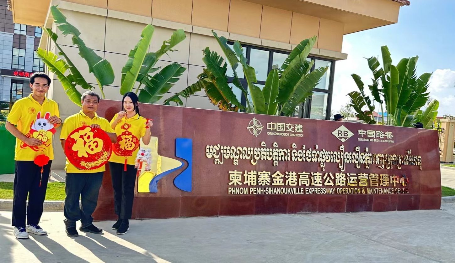 在柬埔寨金边,队员顺金玉带领柬埔寨学生及家长在金港高速公路进行现场教学:“金港高速公路通车后,金边到西哈努克港的车程从原来的5个多小时缩短到2个小时以内,大家出行更加方便了,很感谢中国带来的帮助!”