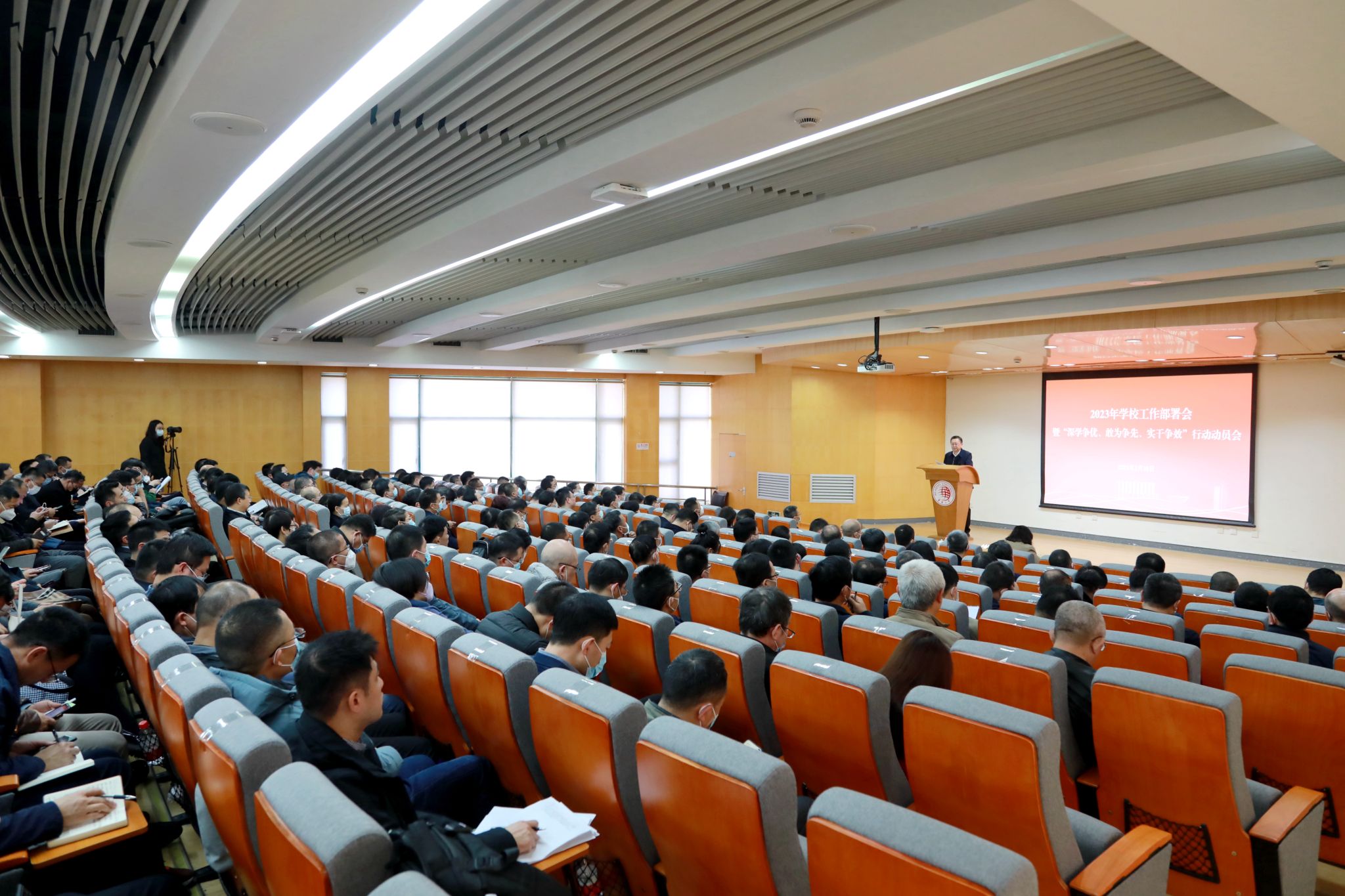 2月28日下午,beat365召开2023年学校工作部署会暨“深学争优、敢为争先、实干争效”行动动员会。校党委书记徐西鹏主持会议并讲话,校长吴剑平作工作布置。其他在家校领导出席,全体中层干部与会。