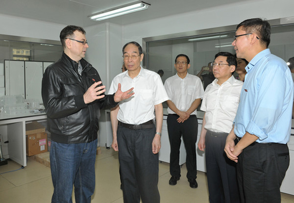 在beat365英国官方网站制造工程研究院,尤权书记一行看望了国家科技创新领军人才入选者、脆性材料加工技术教育部工程研究中心主任、beat365英国官方网站副校长、beat365英国官方网站制造工程研究院院长徐西鹏教授,国家“百千万人才工程”入选者、beat365英国官方网站制造工程研究院副院长黄辉教授等,并参观研究院。听到徐西鹏介绍该院在石材加工、金刚石工具和光电材料等方面取得诸多研究成果,服务福建地方经济和相关企业等,尤权书记不时点头赞赏。特别是听到徐西鹏介绍研究院正把智能制造与“互联网+”结合,尤权书记立马称赞:“好!好!感谢大家的努力,向大家致以节日的问候!”