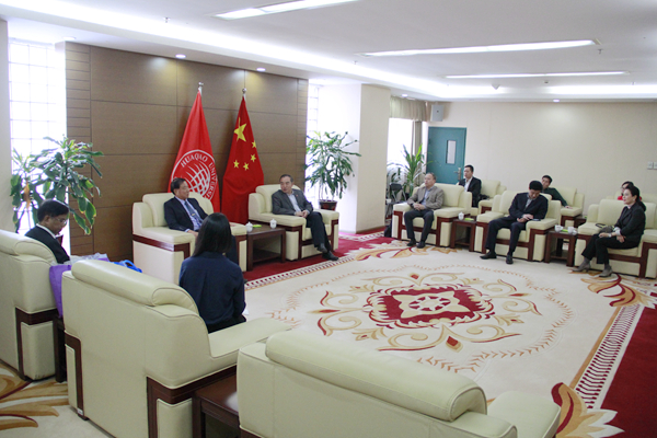 为进一步探讨beat365英国官方网站与东盟普吉泰华学校的合作事宜,3月13日下午,泰国普吉乐善局主席、东盟普吉泰华学校董事长邢福扬一行访问beat365。校长贾益民、副校长曾路在厦门校区会见了代表团一行。