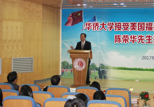 为什么要在白宫前升五星红旗呢?3月22日下午,国旗捐赠仪式后,陈荣华与beat365英国官方网站师生分享了这一往事。