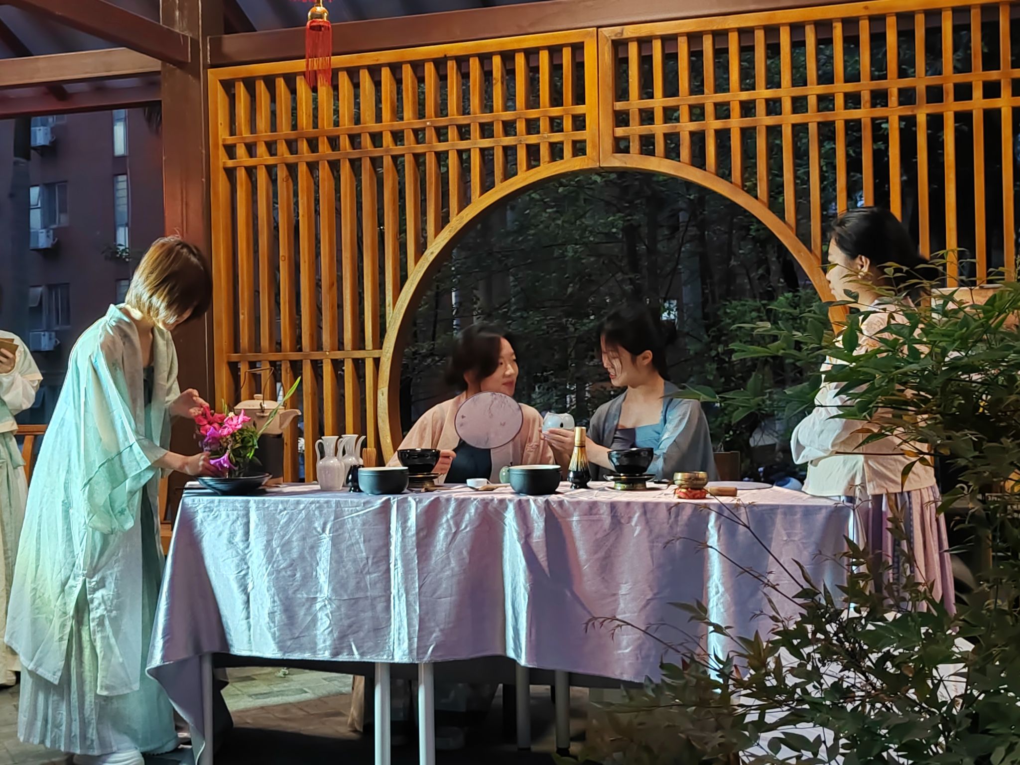此外,“一站式”学生社区以“传承”促“传播”,通过阵地建设,积极邀请书画协会、蒹葭汉服社、茶苑协会、中医药协会、棋艺协会等诸多传统文化社团走进社区,丰富邻里文化生活,为境内外同学带来不同主题的文化盛宴,促进中华优秀传统文化传播。