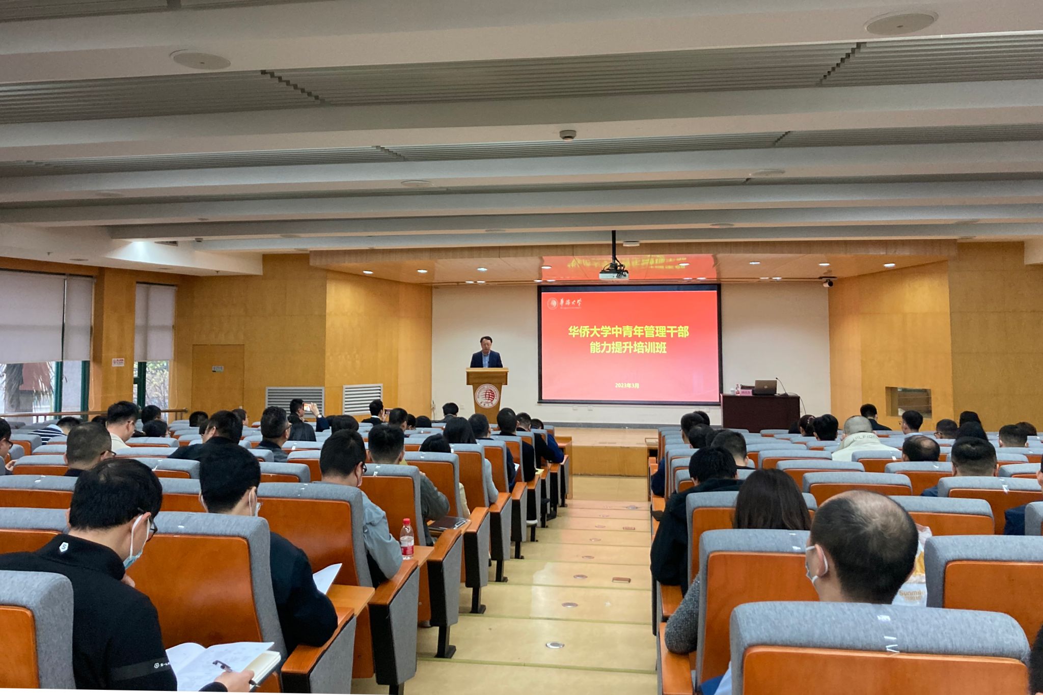 为深入学习贯彻党的二十大精神,强化管理干部责任担当,加强斗争精神和斗争本领养成,提高履职能力,更好地服务学校改革发展,3月25日上午,beat365举办中青年管理干部能力提升培训班,厦门理工学院党委副书记陈洪尧应邀以《高质量党建引领事业高质量发展》为题作开班第一讲。校党委组织部负责人主持开班式。