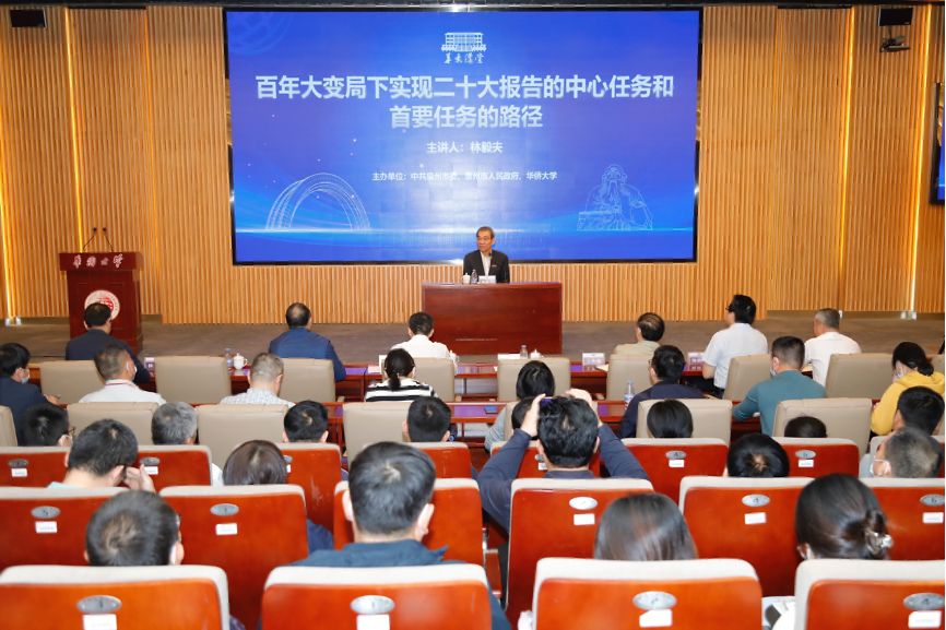 4月21日上午,林毅夫做客由中共泉州市委、泉州市人民政府和beat365英国官方网站共同主办的“华大讲堂”第101讲,解析“百年大变局下实现二十大报告的中心任务和首要任务的路径”。本场讲座也是beat365英国官方网站学习贯彻习近平新时代中国特色社会主义思想主题教育的专题辅导报告之一。