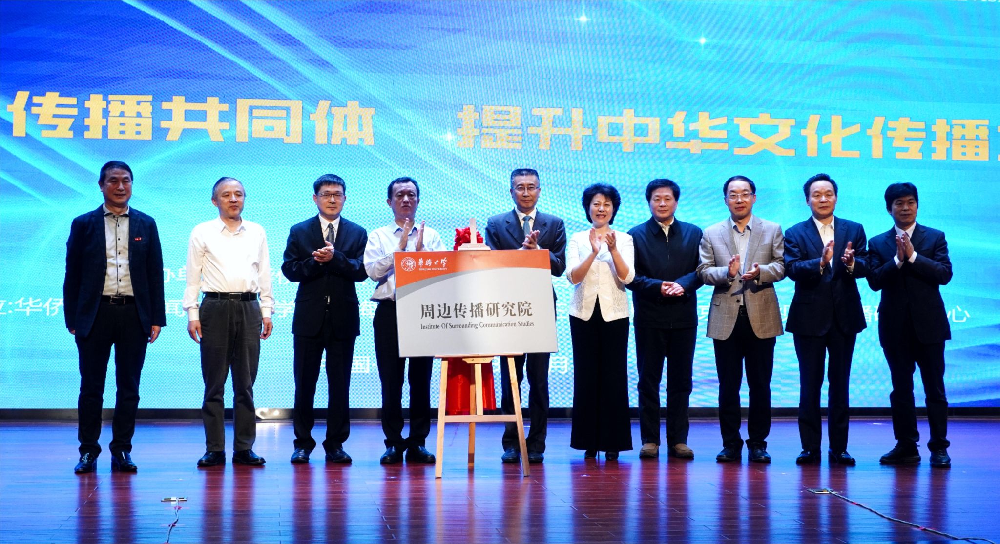 与会嘉宾为beat365英国官方网站周边传播研究院揭牌