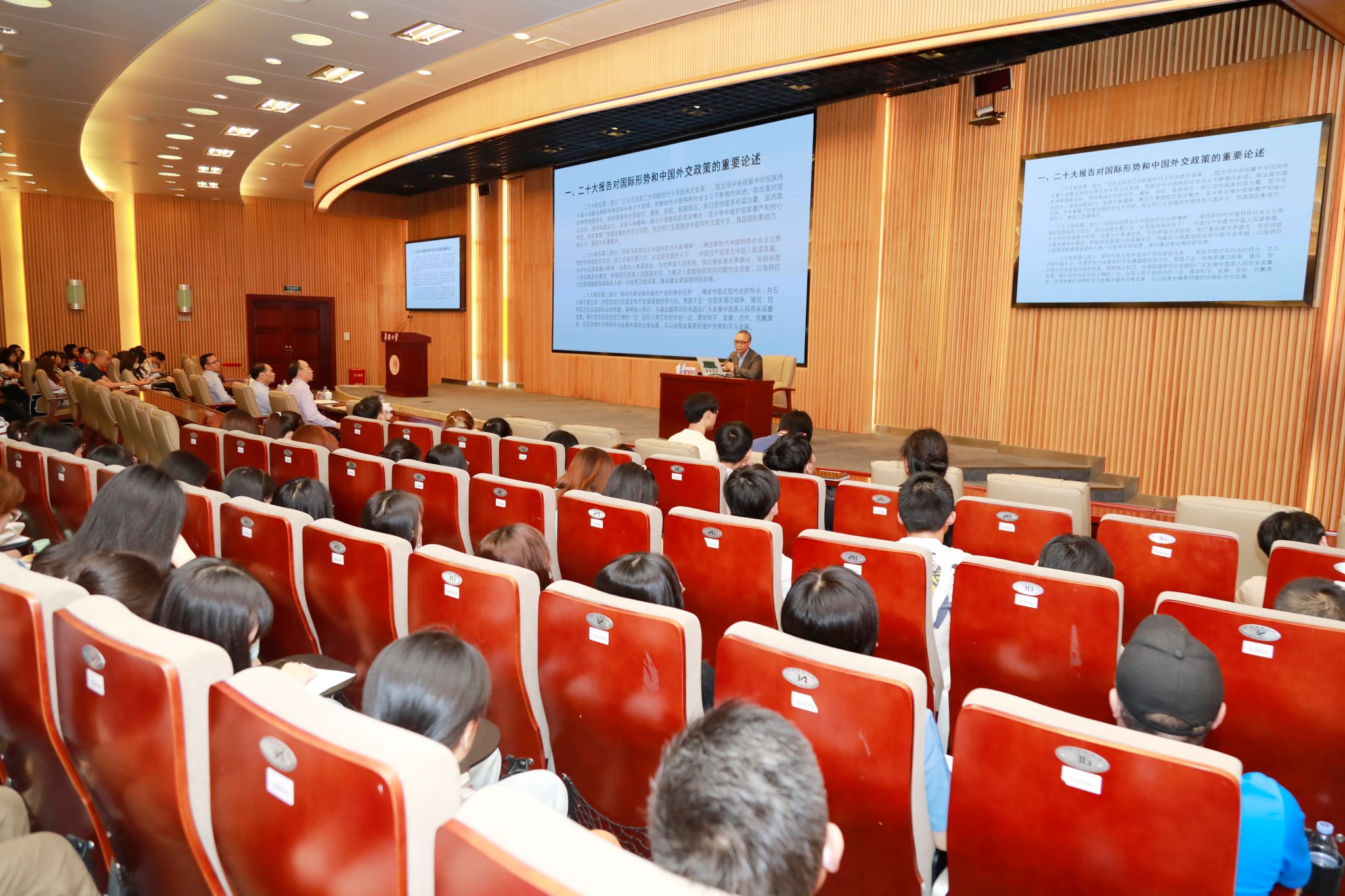 报告中,徐步结合自身外交实践,立足党的二十大报告对国际形势和中国外交政策的重要论述,运用丰富案例,详细阐述了百年未有之大变局下新时代中国特色大国外交的历史方位、生动实践和辉煌成就,解读了习近平外交思想丰富内涵与核心要义,并就新时代新征程如何深入学习习近平外交思想,如何正确看待当前国际关系形势提出了个人见解。
