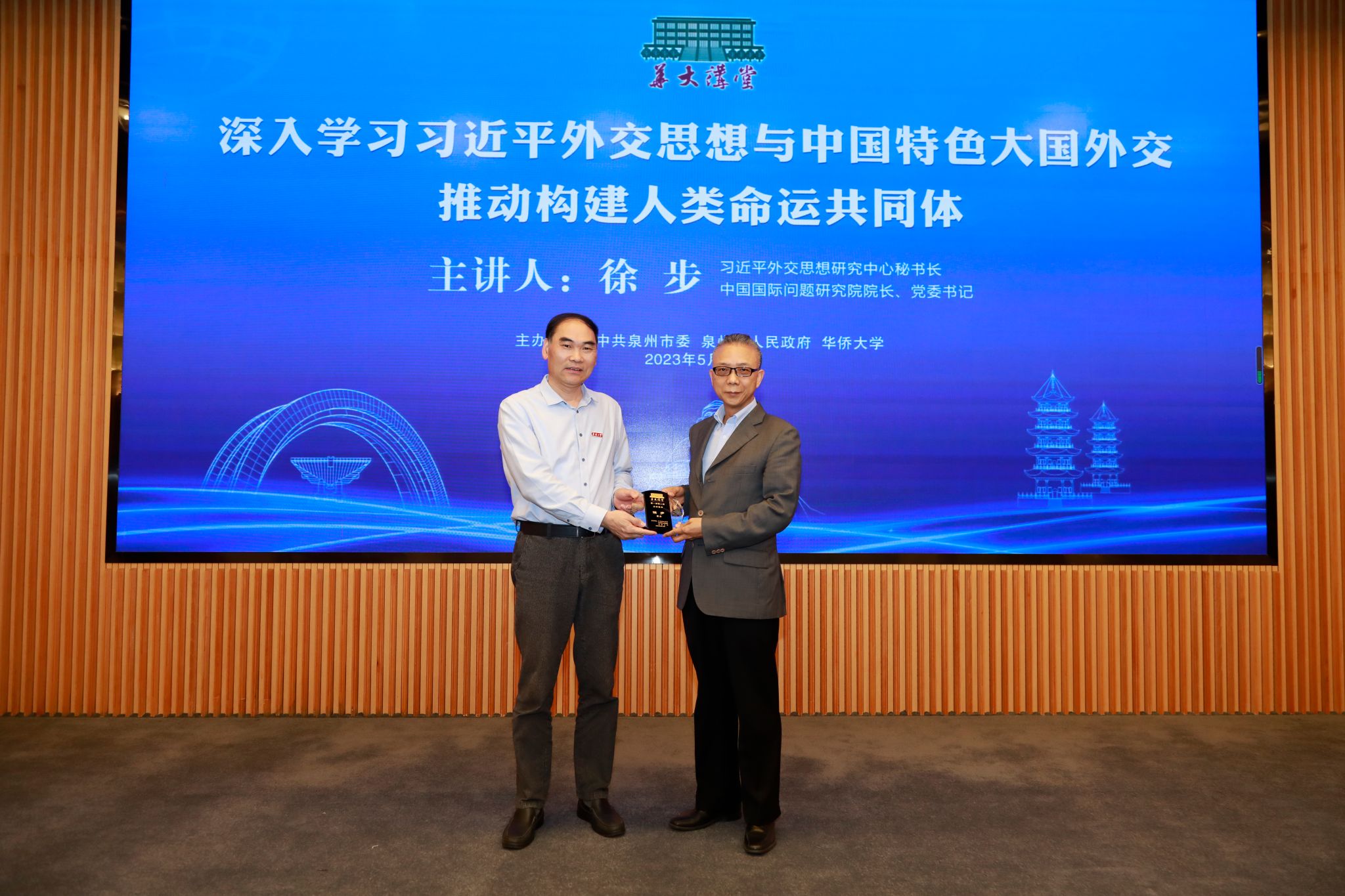 王秀勇为徐步颁授“华大讲堂”主讲嘉宾纪念牌