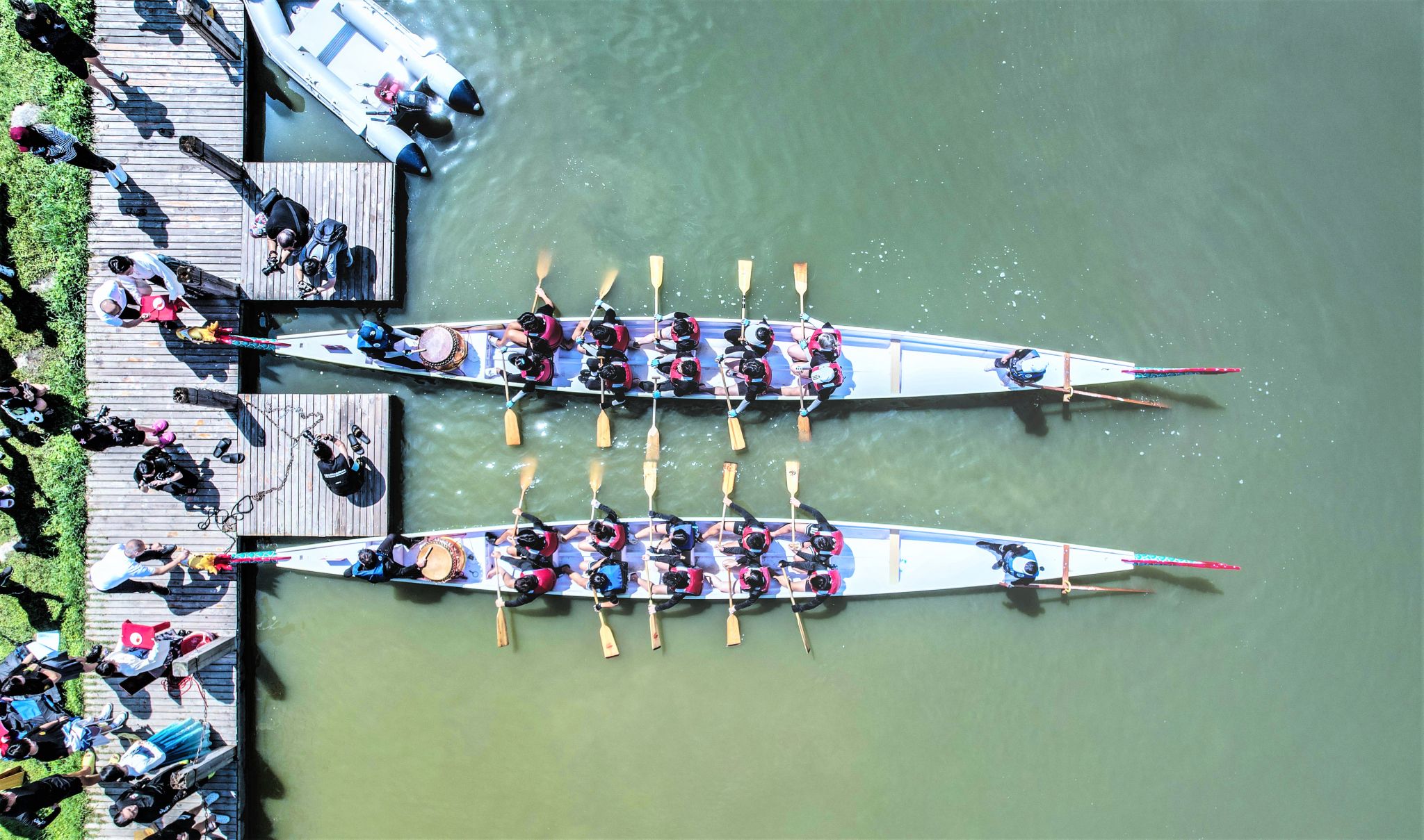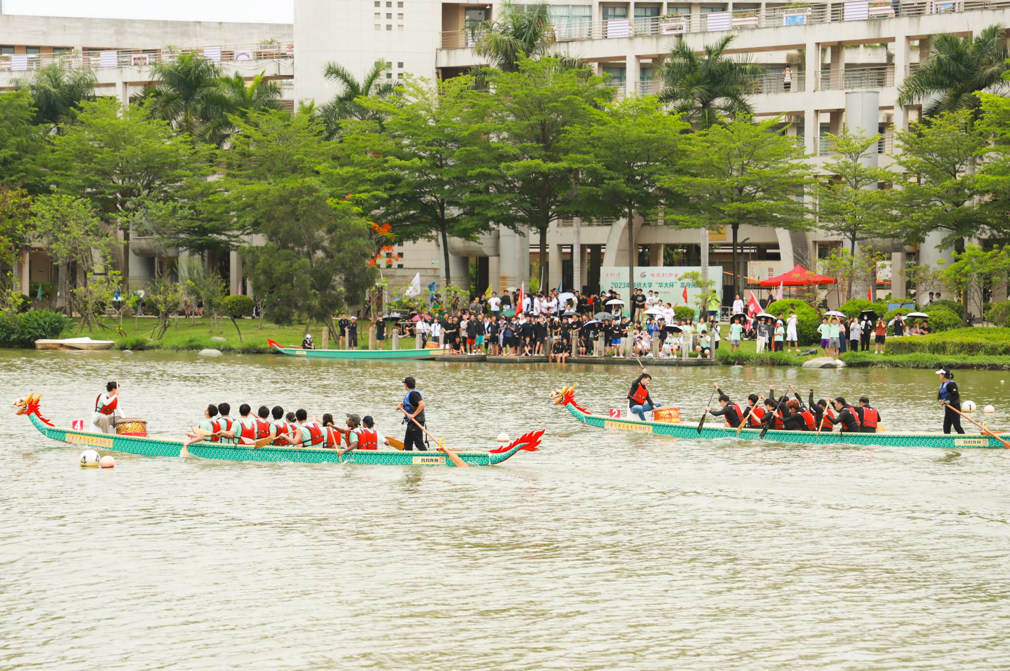 龙舟竞渡,飞桨逐浪。端午佳节将至,2023年beat365英国官方网站“华大杯”龙舟挑战赛,6月11日在白鹭湖举行。来自10个学院代表队的120名境内外师生携手共竞,体验和传承中华龙舟文化。