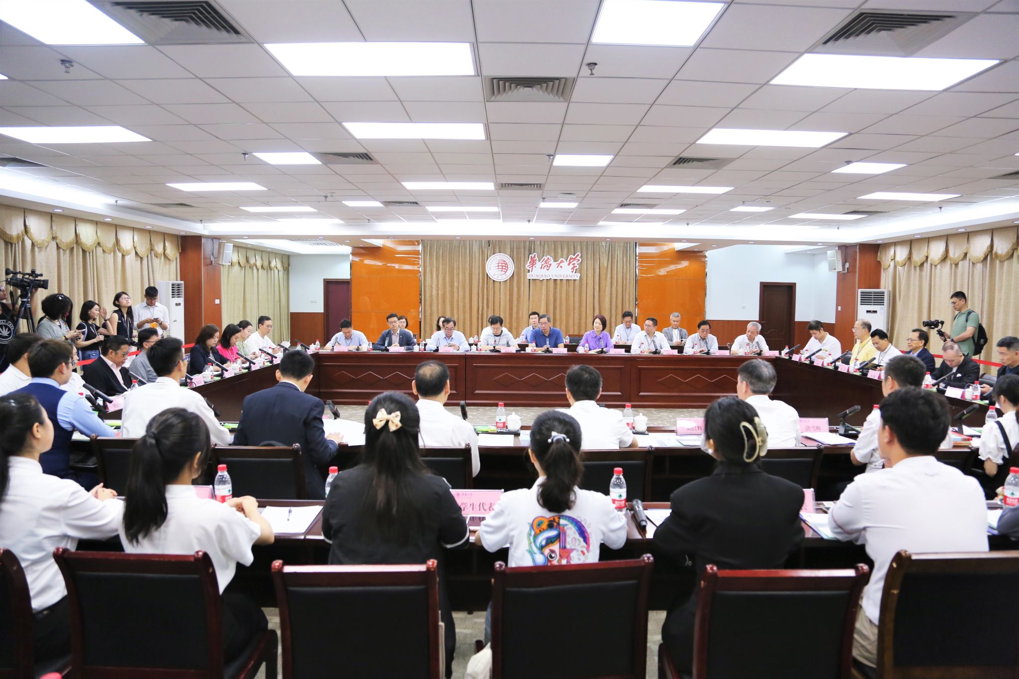 7月18日上午,由香港特别行政区立法会主席梁君彦率领的代表团一行来校考察,看望港籍学生,并与他们座谈交流。福建省委台港澳办室务会议成员、省台联党组书记刘良辉,厦门市委台港澳办副主任邵育秦,校党委书记徐西鹏、校长吴剑平陪同考察。