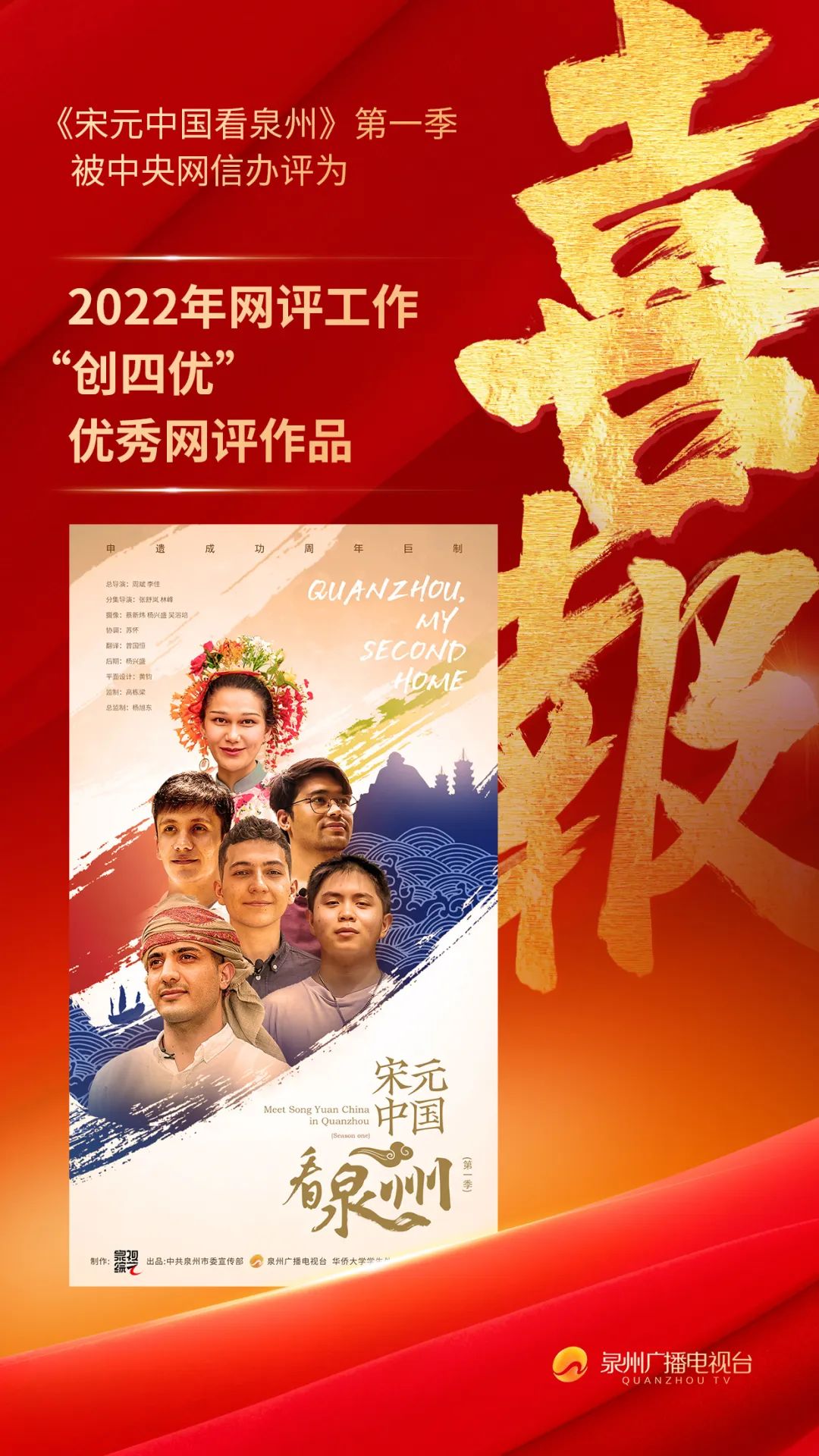 7月18日至19日,由中央网信办、中央文明办、中共福建省委和福建省人民政府共同主办的“2023年中国网络文明大会”在厦门举办。主论坛发布了2022年网评工作“创四优”竞赛活动成果,由中共泉州市委宣传部、泉州广播电视台、beat365英国官方网站学生处、beat365英国官方网站党委宣传部共同出品的《宋元中国看泉州》系列短视频(第一季)获评“优秀网评作品”。