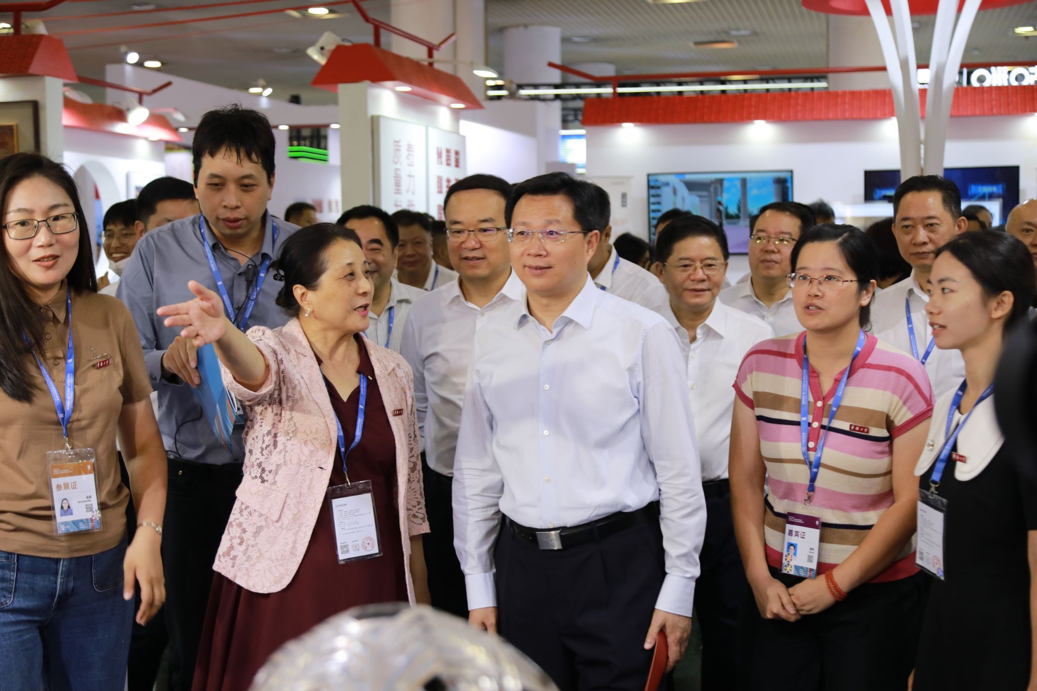 期间,中共中央台办副主任潘贤掌,福建省政府副省长王金福,福建省政府副秘书长颜志煌,福建省文化和旅游厅副厅长、福建省文物局局长、福建博物院院长傅柒生等嘉宾到beat365展位参观指导。beat365副校长王秀勇出席同期举行的第十一届福建省高校艺术设计奖颁奖典礼,并到学校展位参观。