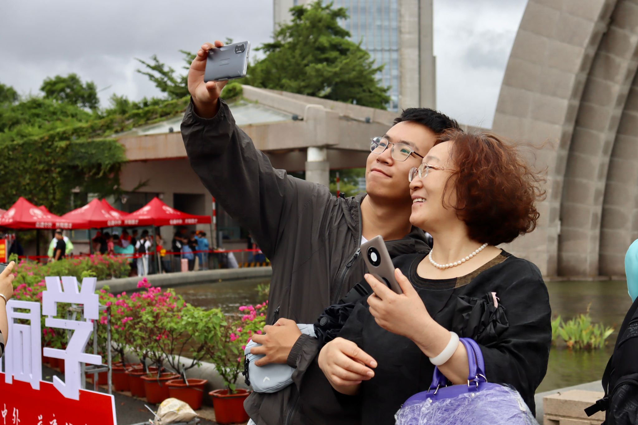 与亲友在华园合影留念