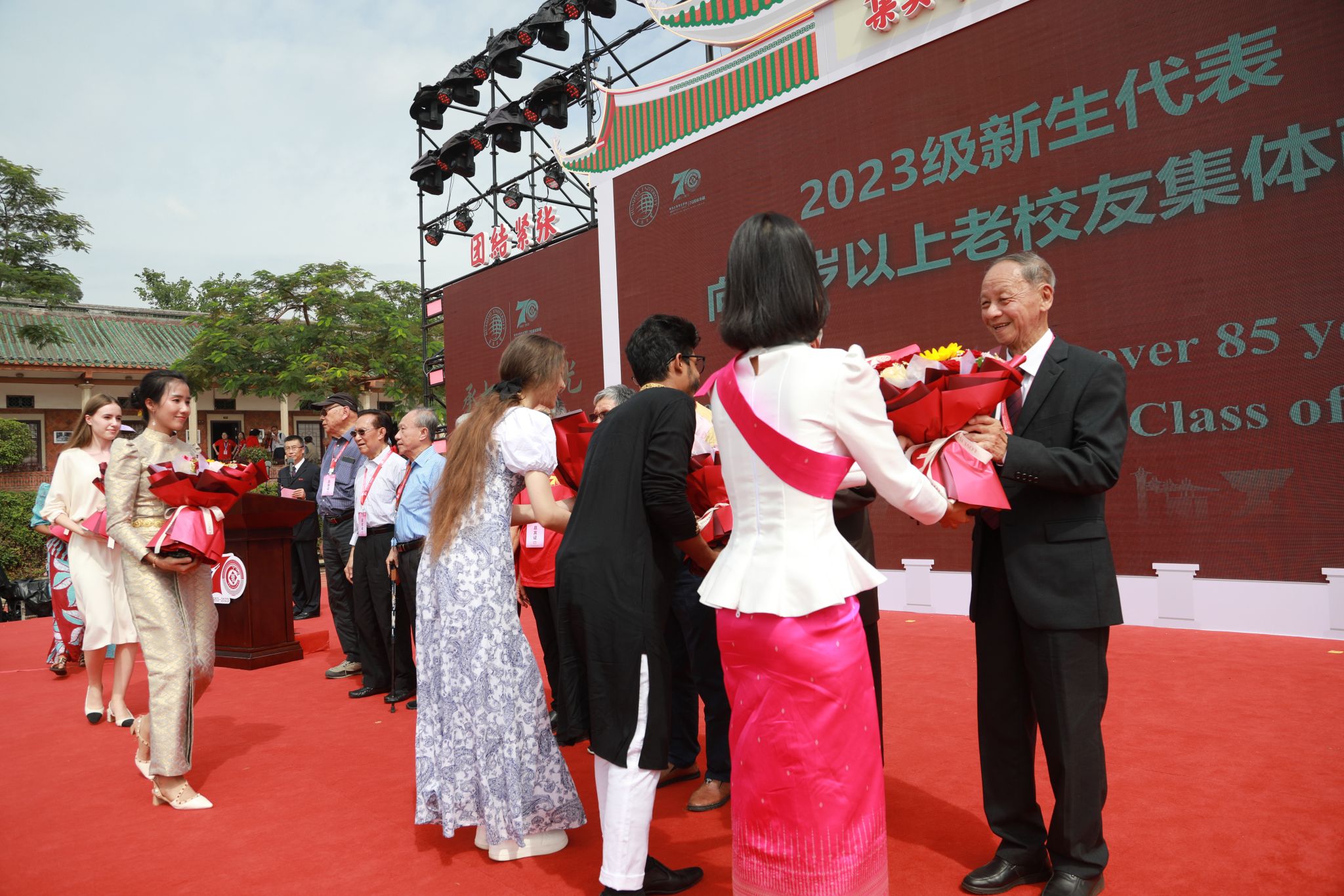 2023级新同学为85岁以上老校友献花