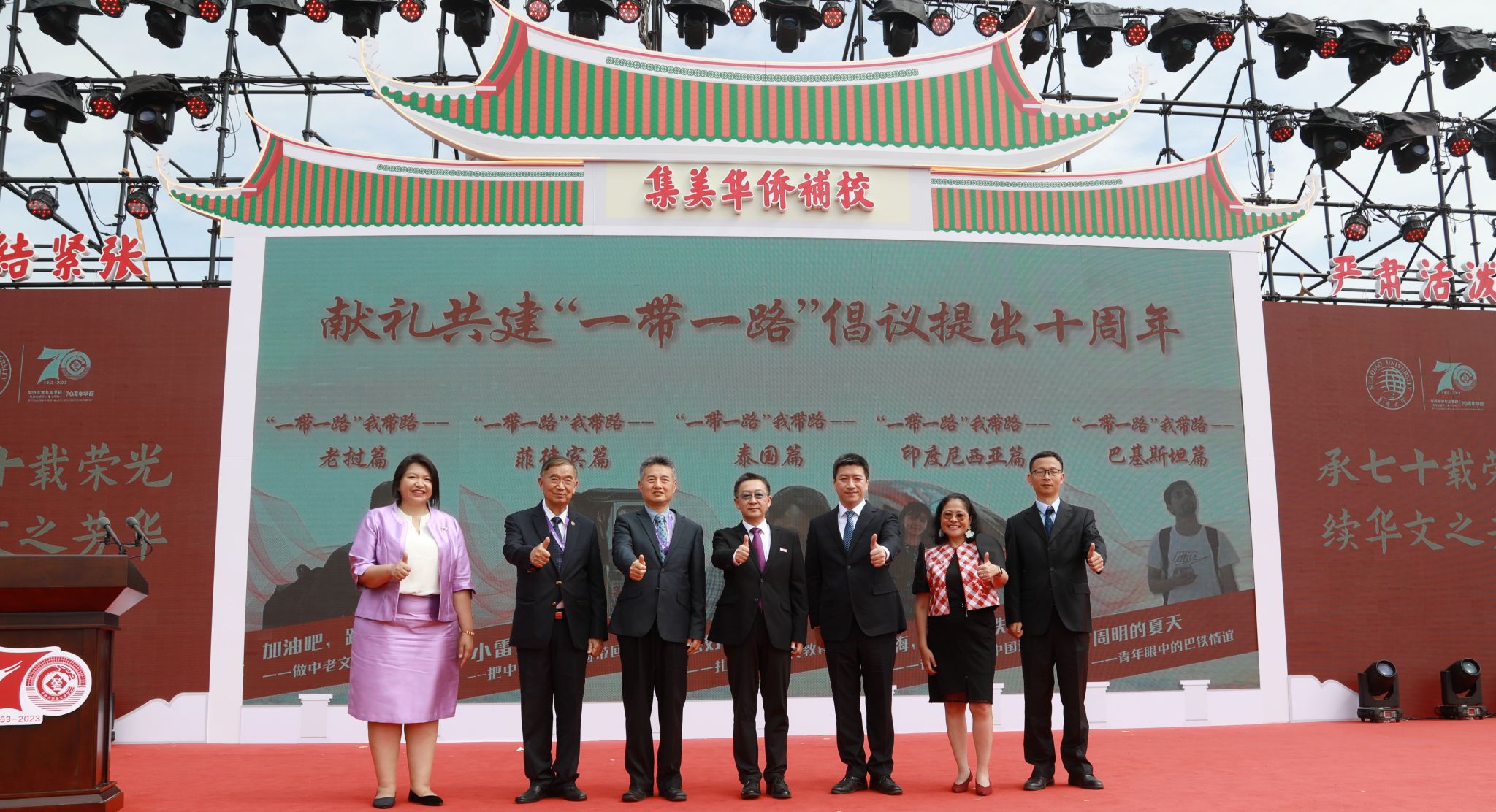 今年是共建“一带一路”倡议提出十周年,华文学院联合厦门卫视出品《“一带一路”我带路》系列作品五期。短视频以beat365英国官方网站留学生的视角讲述“一带一路”大背景下自己和家乡因为“一带一路”建设蜕变的故事。当天庆祝大会上,系列短视频正式发布。