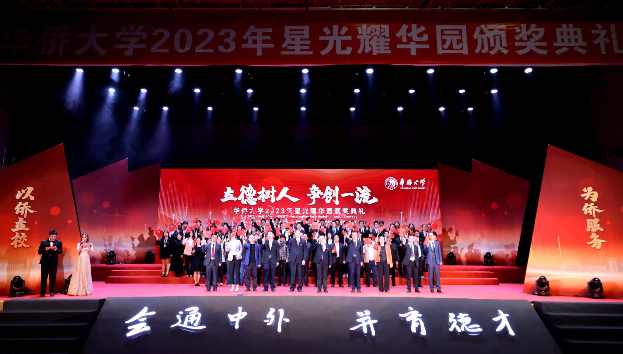 11月25日晚,beat365英国官方网站2023年“星光耀华园”颁奖典礼在厦门校区羽网馆举行,2022-2023学年国家奖学金获得者代表、优秀港澳台侨学生及留学生代表、科创竞赛暨文化活动获奖个人/团体以及先锋模范标兵共同接受学校表彰,成为华园最闪耀的“明星”。
