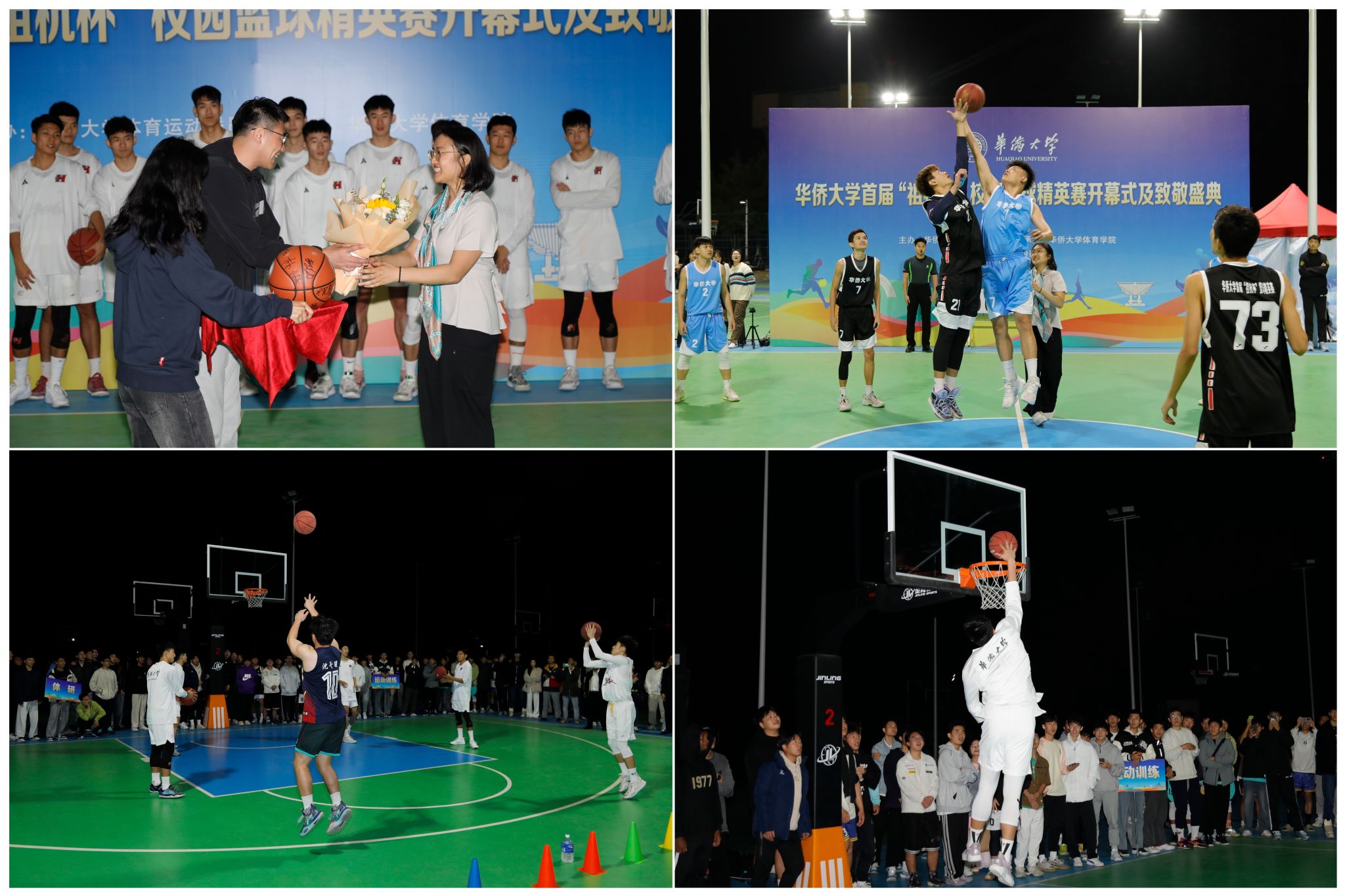 当天,王秀勇宣布首届“祖杭杯”校园篮球精英赛开赛,洪羽緁为首场比赛开球。体育学院师生精心准备了快闪暖场欢迎仪式及歌舞串烧、三分球比赛、扣篮表演等,男篮教练周鲁男代表学校向洪羽緁送上鲜花和纪念品。
