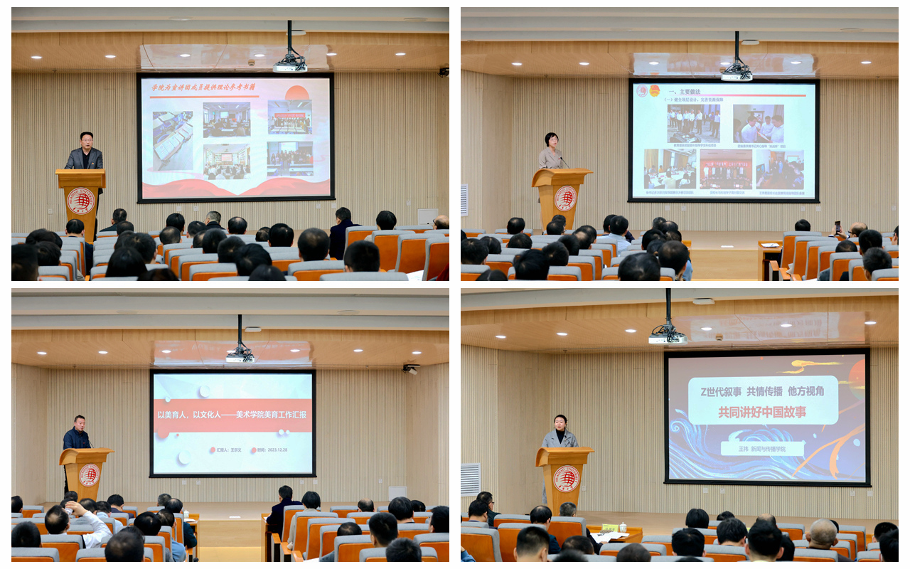 马克思主义学院、校团委、美术学院、新闻与传播学院受邀分别就理论宣讲、科创育人、美育教育与国际传播等内容作工作经验分享。