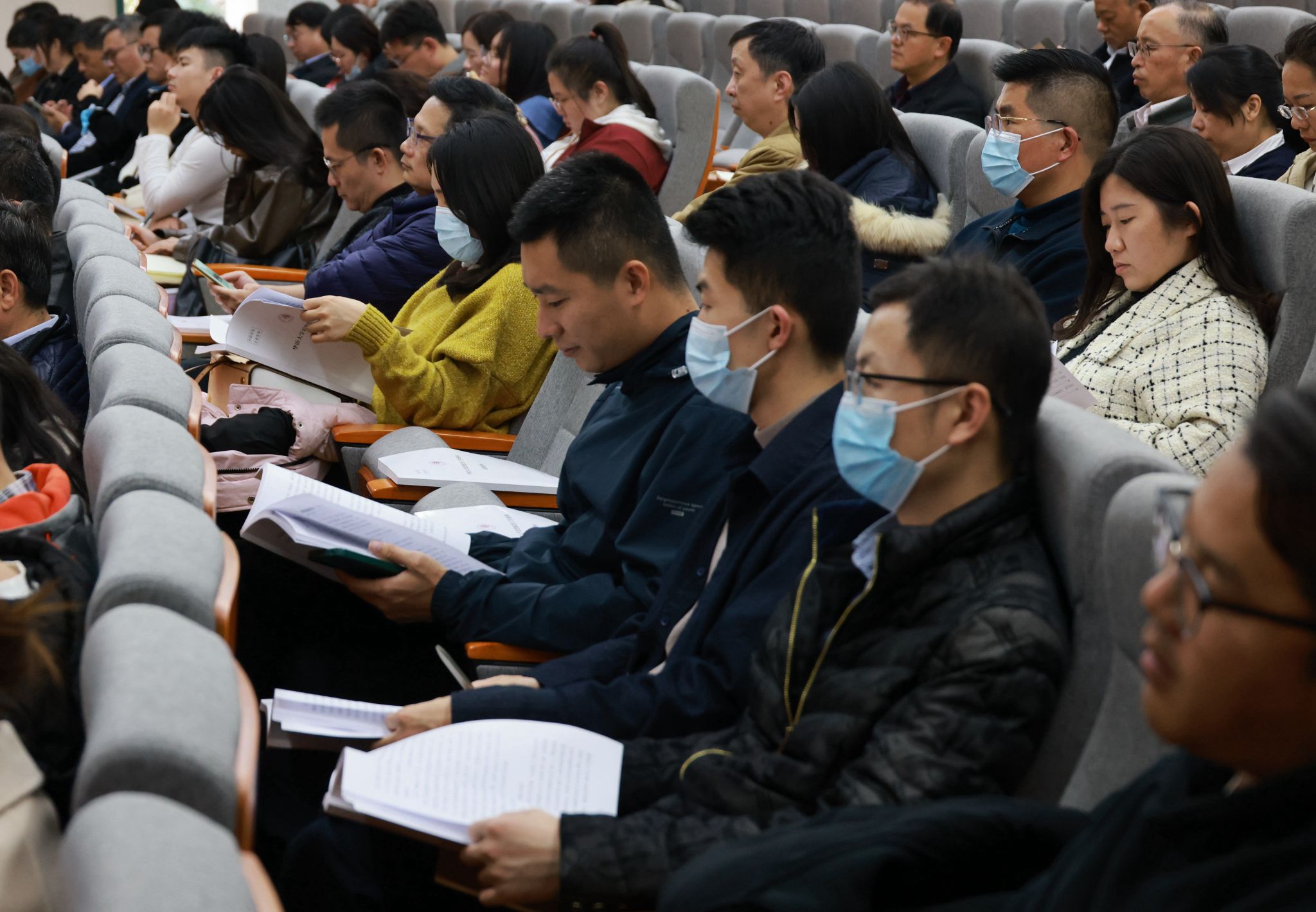 与会代表翻阅学校思想工作案例汇编