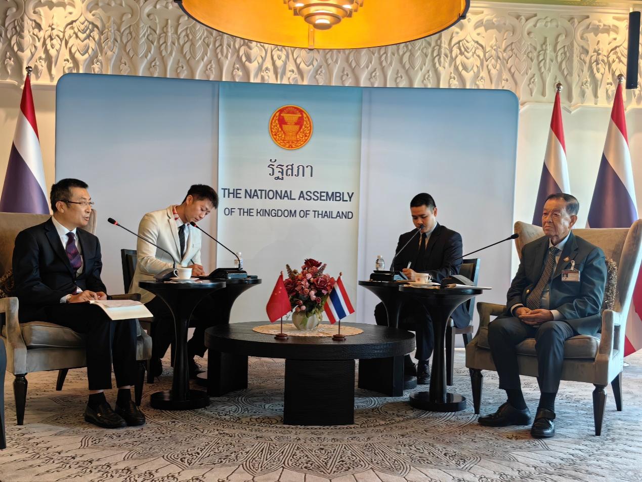 吴剑平与泰国国会议长万木哈玛诺·玛塔(右一)会谈