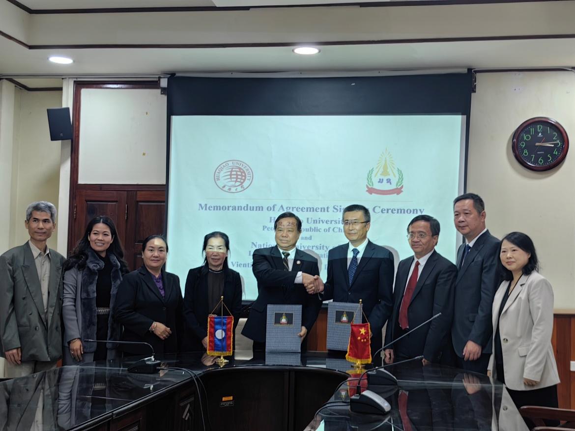 吴剑平与老挝国立大学校长乌东共同签署了两校合作协议。老挝国立大学是该国规模最大的综合性公立大学。
