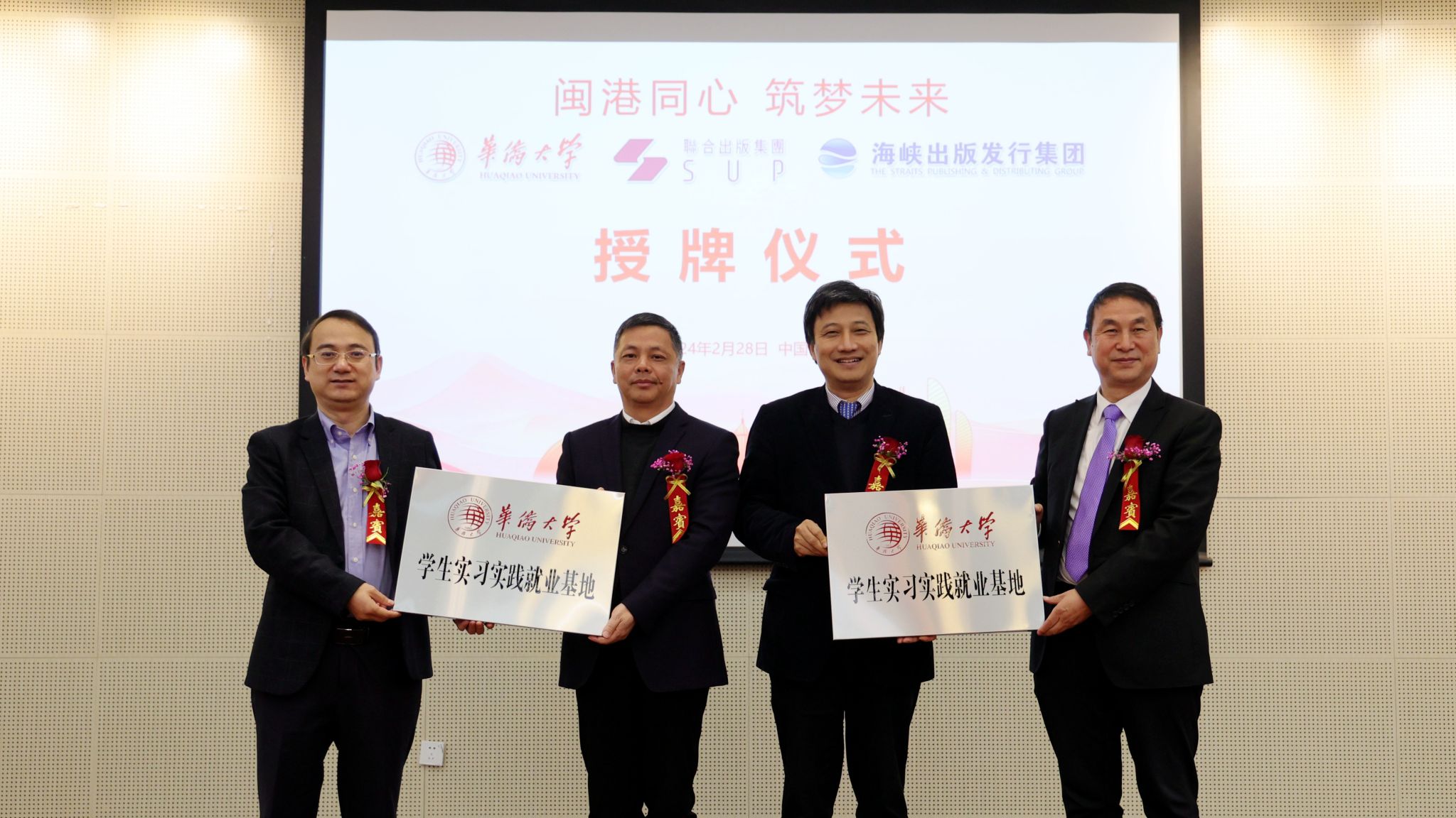 签约仪式上,海峡出版发行集团和香港联合出版集团分别向beat365英国官方网站捐赠主题图书800册,beat365英国官方网站向香港联合出版集团、海峡出版发行集团分别授予“beat365英国官方网站学生实习实践就业基地”和“beat365英国官方网站研究生工作站”牌匾。