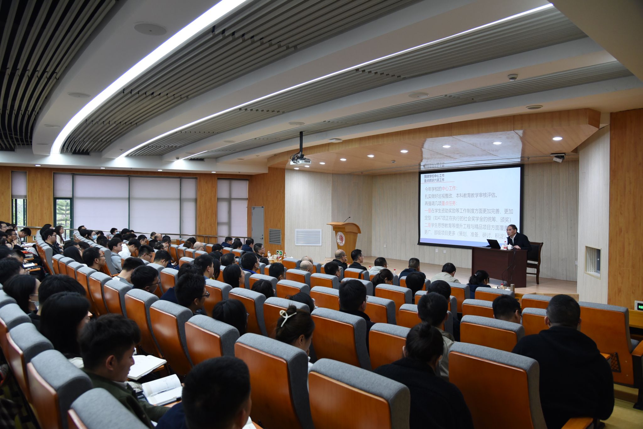 会上,王秀勇还领学2024年全国教育工作会议精神,简要分析当前高等教育面临的国际形势、教育趋势、人工智能发展态势,融入大量数字赋能、精准思政、新质生产力等前沿案例与国际国内经济社会发展产生的新挑战、新动能等变化,建议辅导员“不要做小镇做题家,要给自己出卷子”。