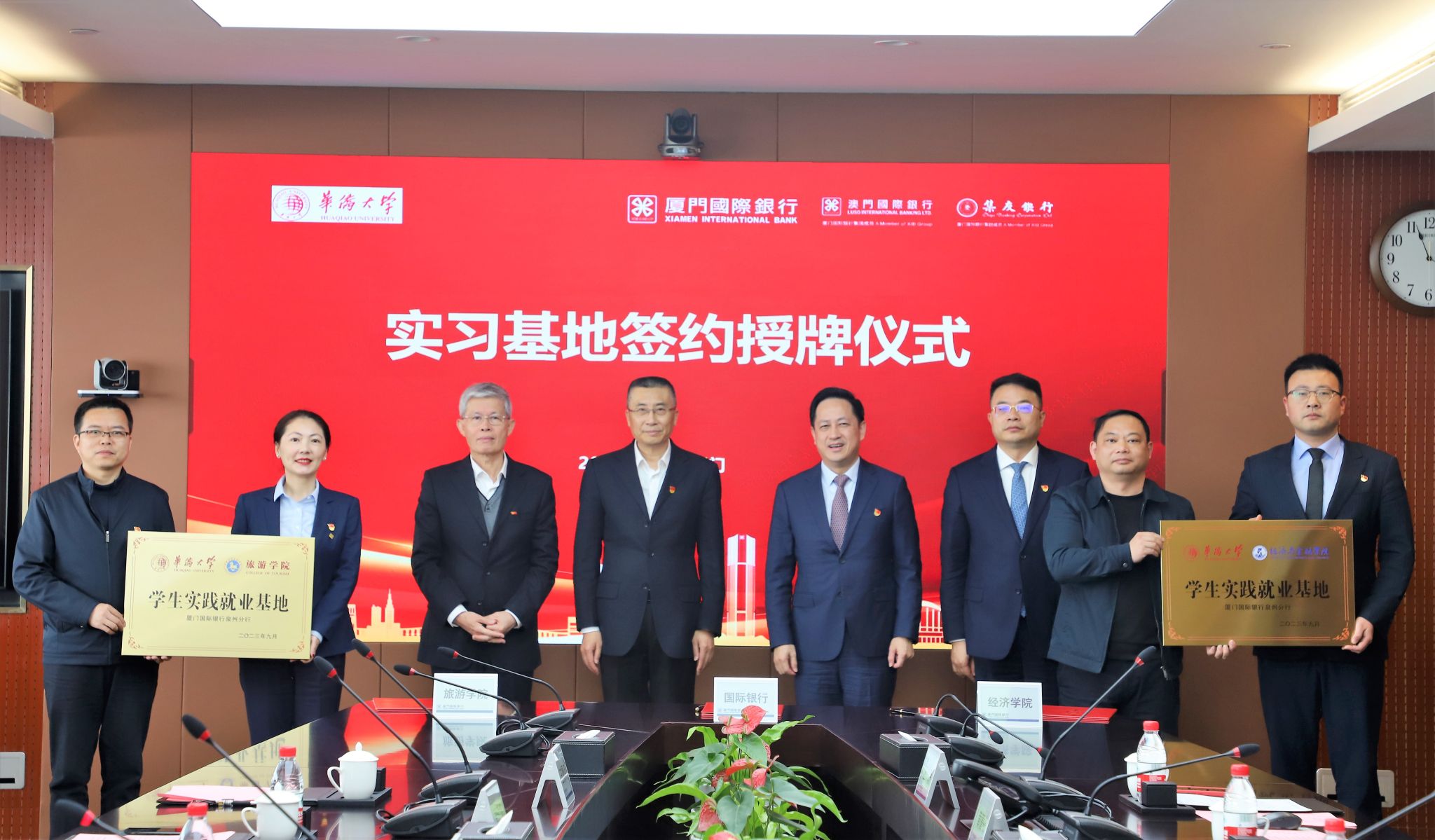 座谈会后,双方签约党建合作协议并授牌学生实习实践就业基地。