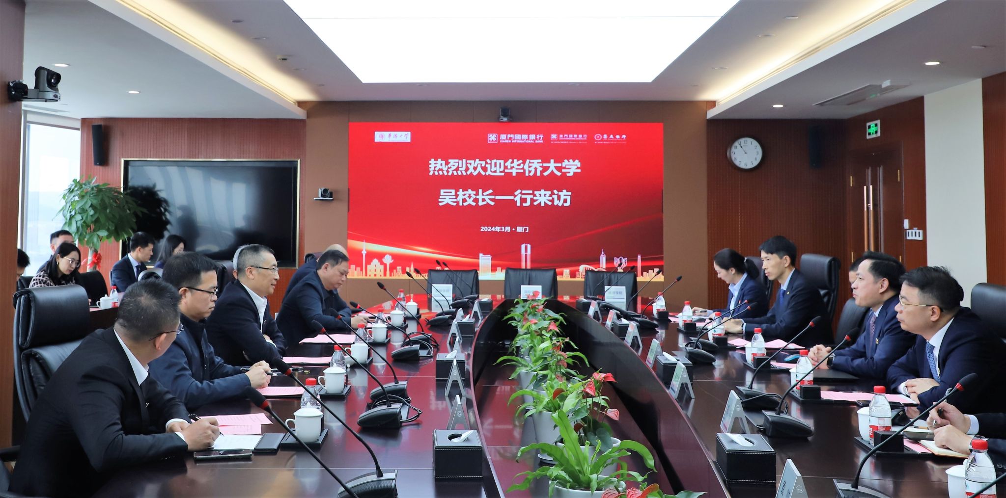 3月13日上午,校长吴剑平带队走访厦门国际银行,同厦门国际银行党委副书记、行长曹云川,党委委员、副行长黄志如等座谈交流。
