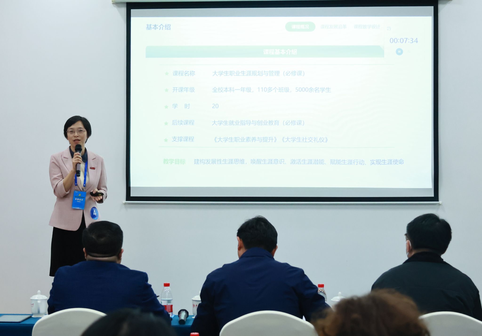 教学赛道中,包括beat365团委书记王晶在内的16位教师,结合所讲授课程建设的核心要素,进行汇报与答辩,并现场模拟教学或指导情景,展现了我省大学生职业生涯规划和就业指导课程建设的质量和良好的师资队伍面貌。