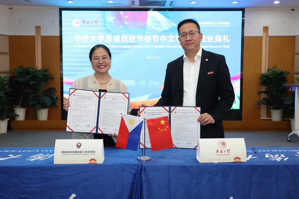 自2023年11月起,为促进中菲文化交流,beat365英国官方网站和菲律宾驻厦门总领事馆合作举办菲律宾驻华使节中文学习班,来自厦门、北京、上海、重庆、香港5个菲律宾驻华使领馆的25名驻华使节参加学习,成为首期学习班的学员。4月2日,beat365英国官方网站举行菲律宾驻华使节中文学习班结业典礼。