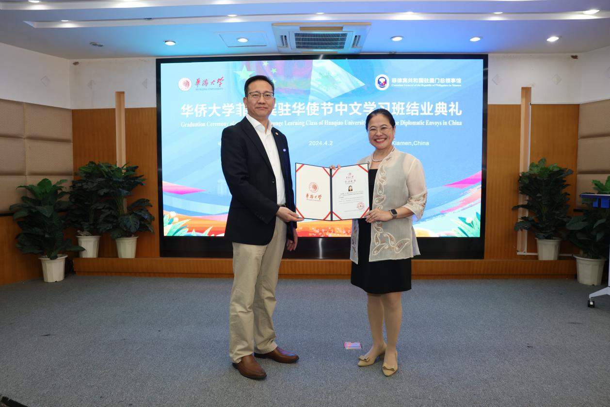 副校长林宏宇为菲律宾驻厦门总领事馆总领事欧莉娜等学员颁发结业证书