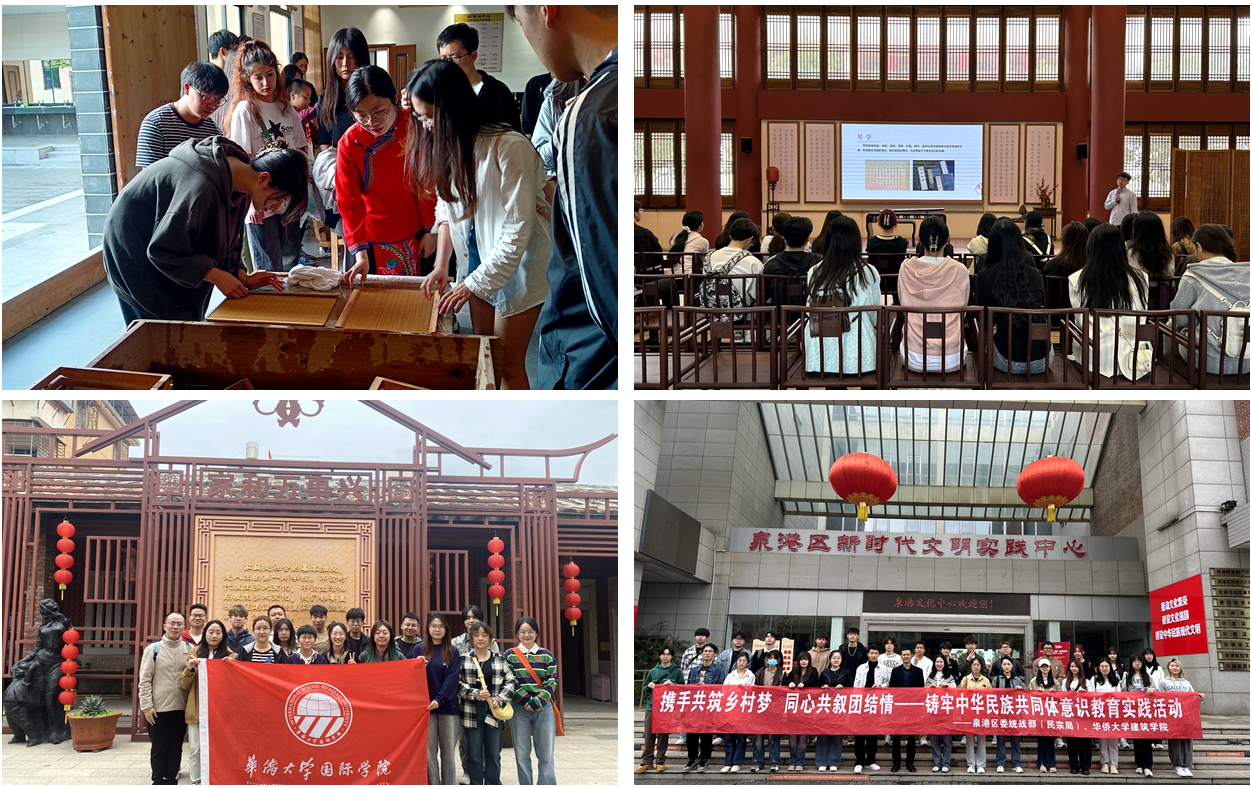 “同心圆”工作室积极与属地开展共建,设立“铸牢中华民族共同体意识”基地和教学点,通过具有沉浸感、体验式、互动性等特征的实践活动,帮助青年学生不断加深对铸牢中华民族共同体意识的理解。国际学院、建筑学院、医学院、政管学院、美术学院等先后组织各民族学生赴泉州府文庙教育历史文化馆教学点、鲤城区人民法院家事文化馆教学点、南外宗正司遗址教学点以及惠安革命烈士纪念馆、泉港区民族团结教育基地开展研学;旅游学院、数学学院、音舞学院等还积极开拓教育资源,主动联系对接宁化县治平畲族乡、洛江惠女水库、漳州长泰龙人古琴文化村等,并组织各民族学生前往开展教育实践。