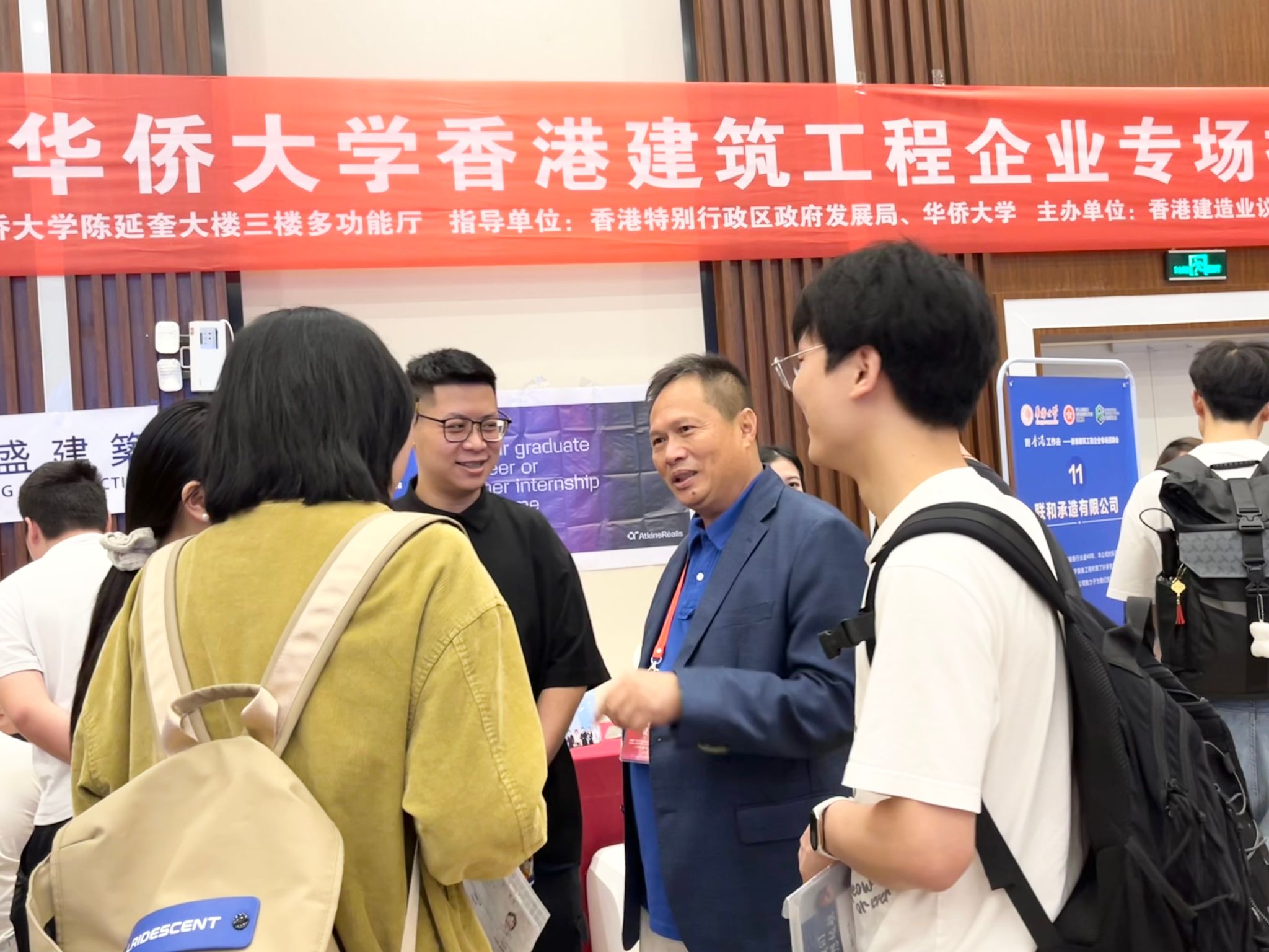 招聘会现场座无虚席,香港工程师学会、香港顾问工程师协会等业界代表分享香港建筑工程行业的相关情况,内地赴港工作的人才代表结合自身工作经历作经验分享,22家用人单位向参会毕业生派发招聘资料、介绍公司情况和招聘政策并收取应聘简历、进行面试。