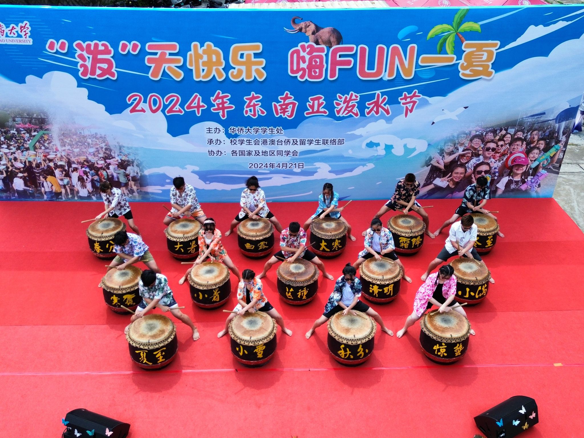 在泉州校区,马来西亚二十四节令鼓队带来的阵阵鼓声点燃了现场气氛。而由各同学会联袂表演的滴水礼,以祈福拉开演出序幕。随后上演的东南亚风情舞蹈各具特色,美轮美奂。才艺展示大赛中,同学们的投票热情更让现场气氛达到高潮。