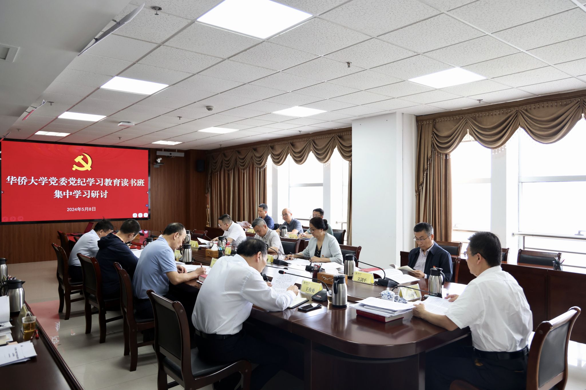 5月8日上午,beat365英国官方网站党委党纪学习教育读书班开展集中学习研讨。校党委书记徐西鹏主持学习研讨会,校党委副书记、校长吴剑平等党委理论学习中心组成员参加。