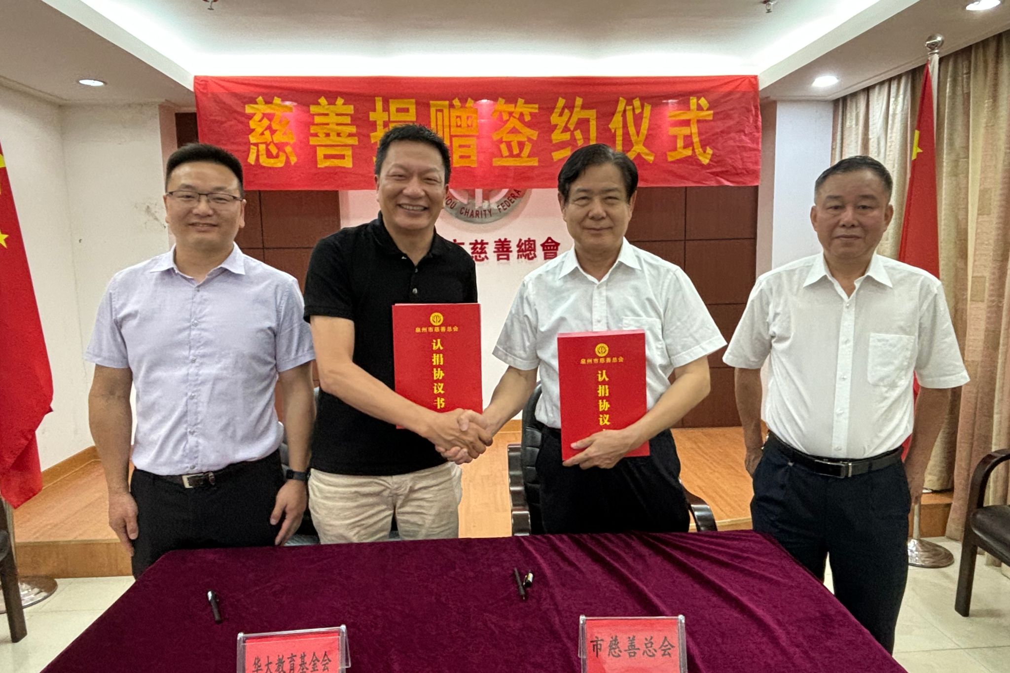 泉州市慈善总会会长沈耀钦(右二)与beat365签署捐赠协议