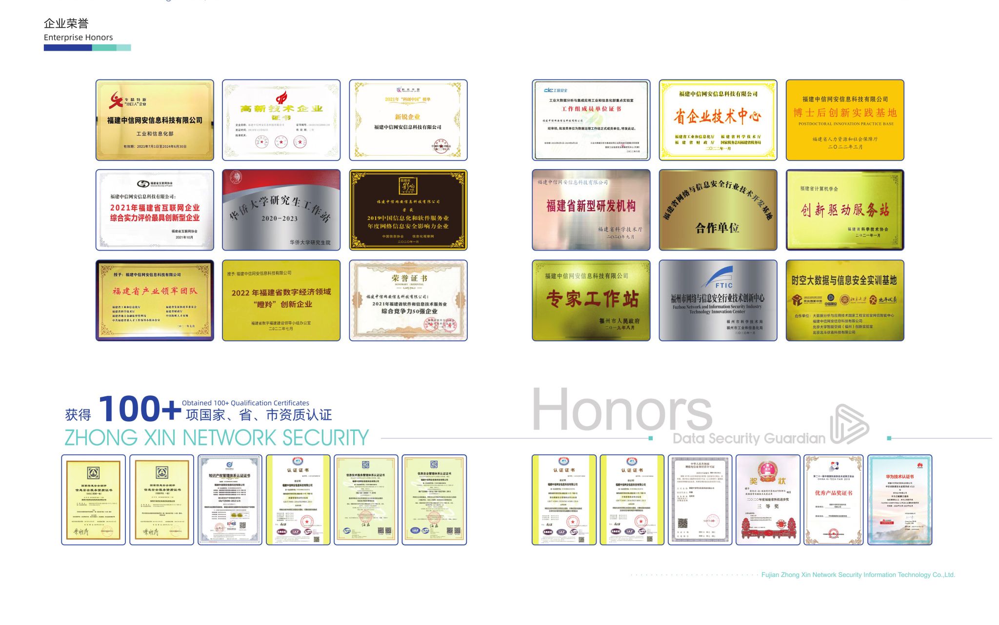 凭借在网络与数据安全领域的突出贡献,中信网安收获国家级专精特新“小巨人”企业、国家高新技术企业、工业和信息化部5G应用安全创新推广中心、工业和信息化部重点实验室“商用密码应用工作组”及“大数据安全工作组”成员单位、国家知识产权优势企业、福建省级新型研发机构、福建省产业领军团队等诸多荣誉,成长为福建省内市场占有率第一的网络与数据安全领军企业,有效地推动了区域数字经济的发展。