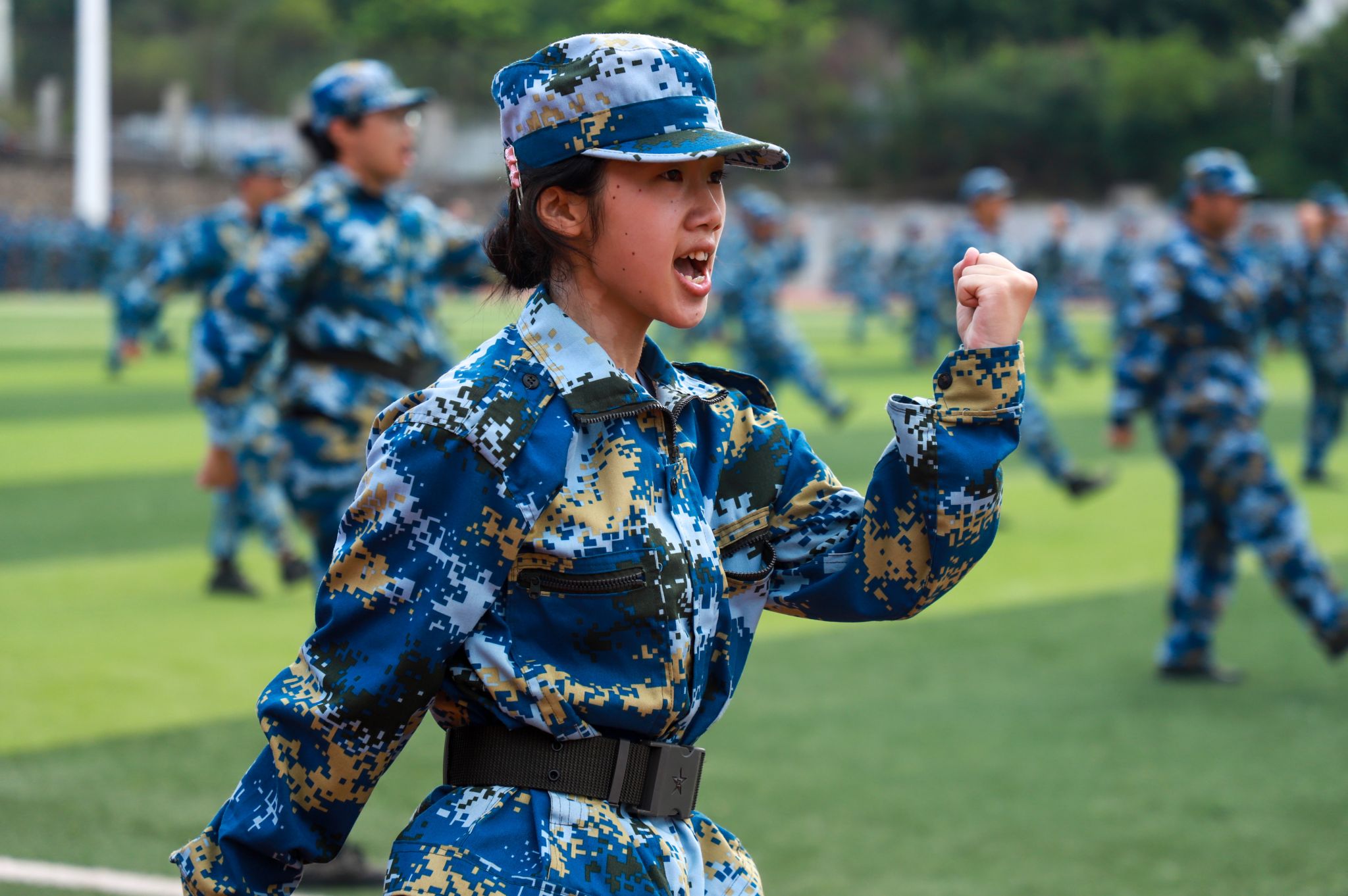千淘万漉虽辛苦,吹尽狂沙始到金。学生方阵宛如一幅迷彩色的生动画卷,在广阔的操场上缓缓展开。整齐划一的动作,响亮激昂的口号,同学们展现出最饱满的精神姿态,接受老师和教官的检阅。