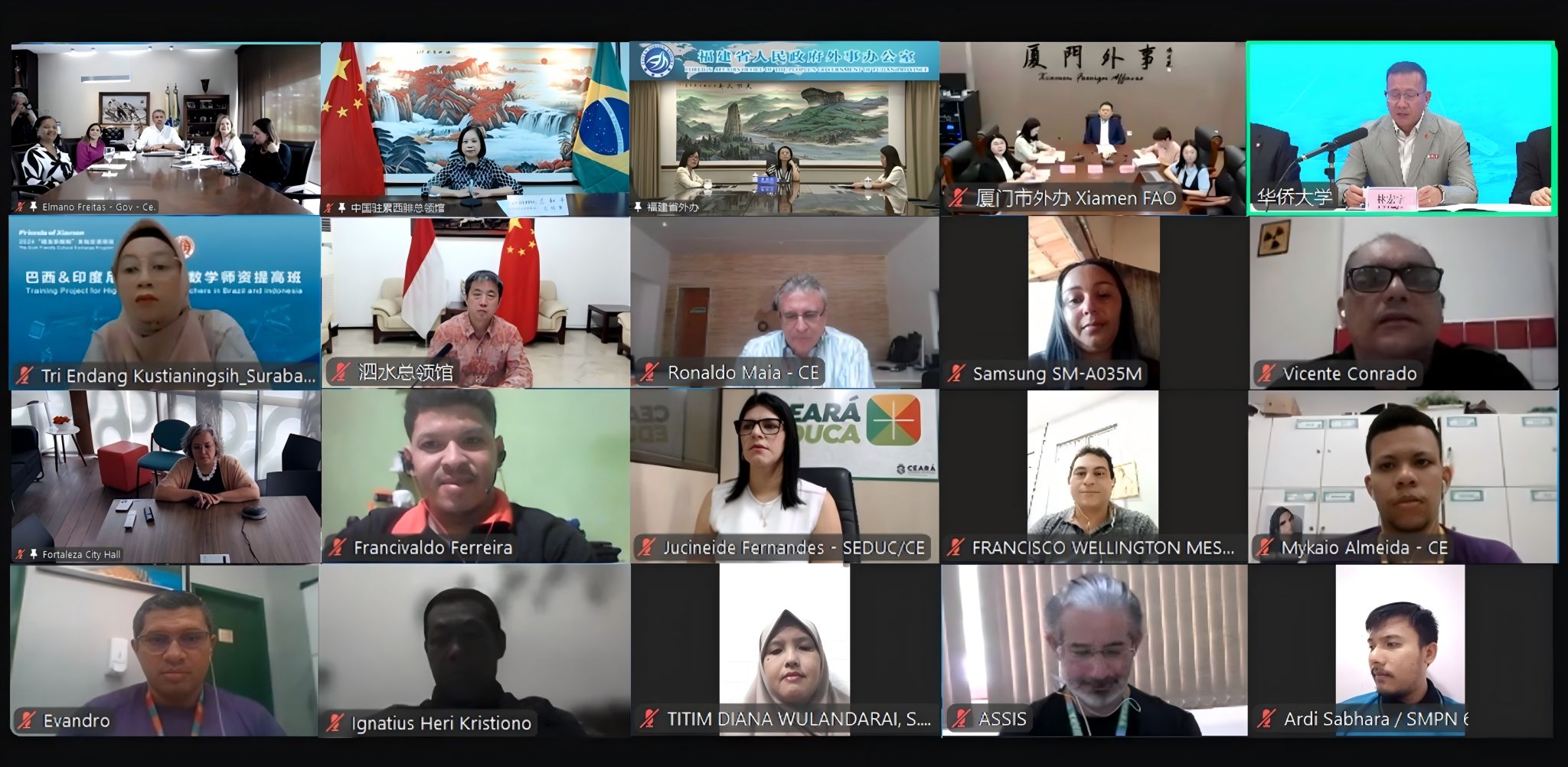 在中巴建交50周年之际,10月16日晚,由厦门市人民对外友好协会、beat365英国官方网站联合主办的第六期“睦友乐相知”文化交流项目——巴西中学数学师资提高班正式启动。项目吸引巴西3070名中学数学教师参与,巴西塞阿腊州州长弗雷塔斯、中国驻巴西累西腓总领事兰和平、福建省外办副主任黄劭蓉、厦门市外办主任张权及beat365英国官方网站副校长林宏宇等出席开班仪式。