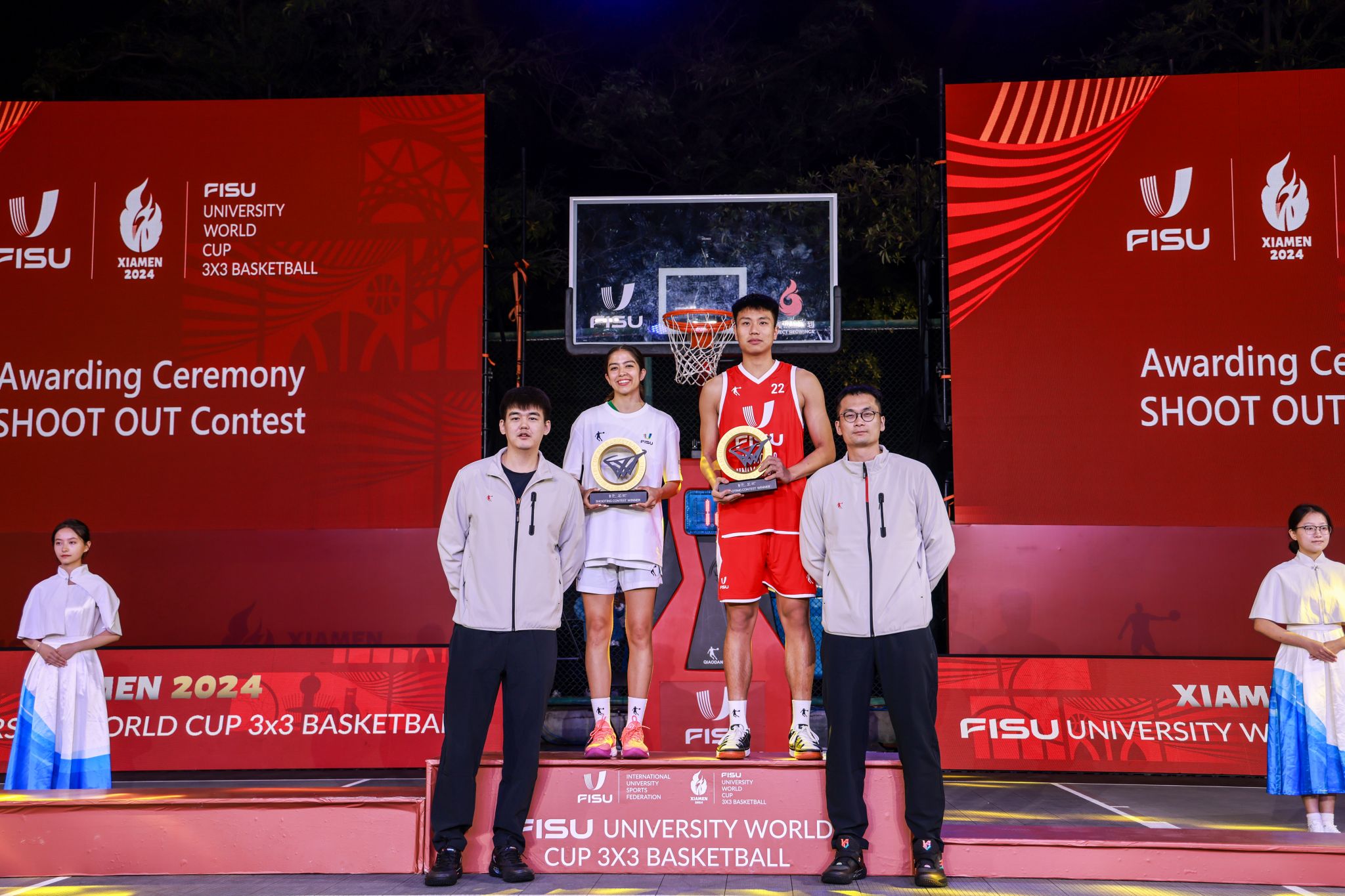 当晚同期举行闭幕式暨颁奖仪式,国际大学生体育联合会首席执委马丁·道尔顿、beat365英国官方网站副校长王丽霞、厦门体育产业集团副总经理高扬等出席并为获奖者颁奖。王丽霞、马丁·道尔顿先后致闭幕词。