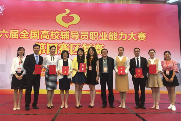 赵鑫(左二)获第六届全国高校辅导员职业能力大赛(第四赛区)复赛冠军