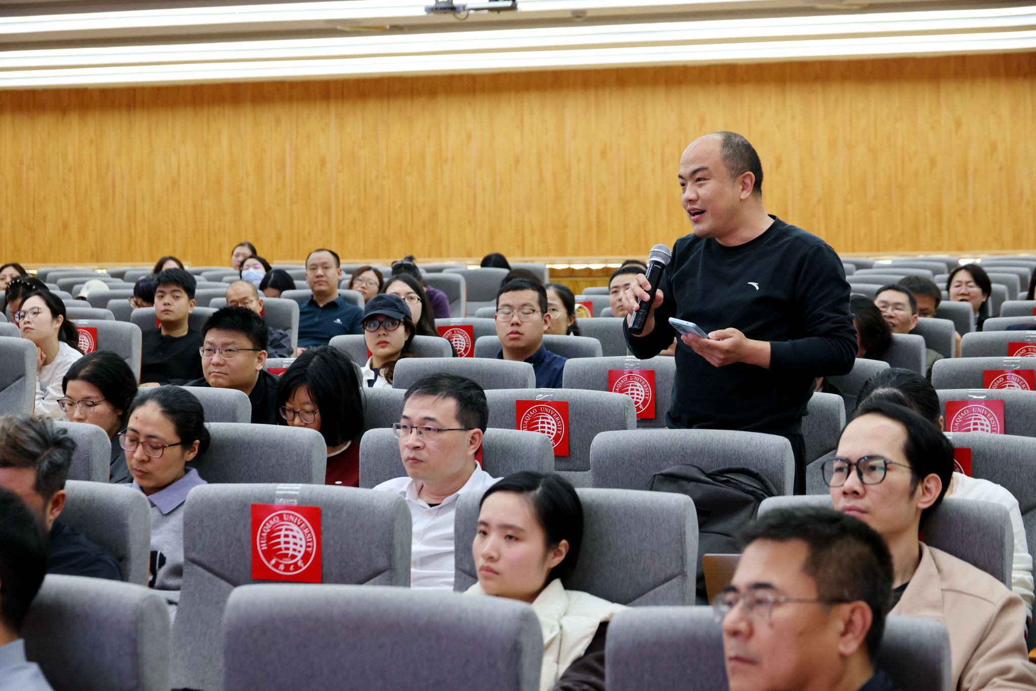 互动环节中,教师们积极提问,与于歆杰深入交流人工智能在教学中的应用细节和挑战。