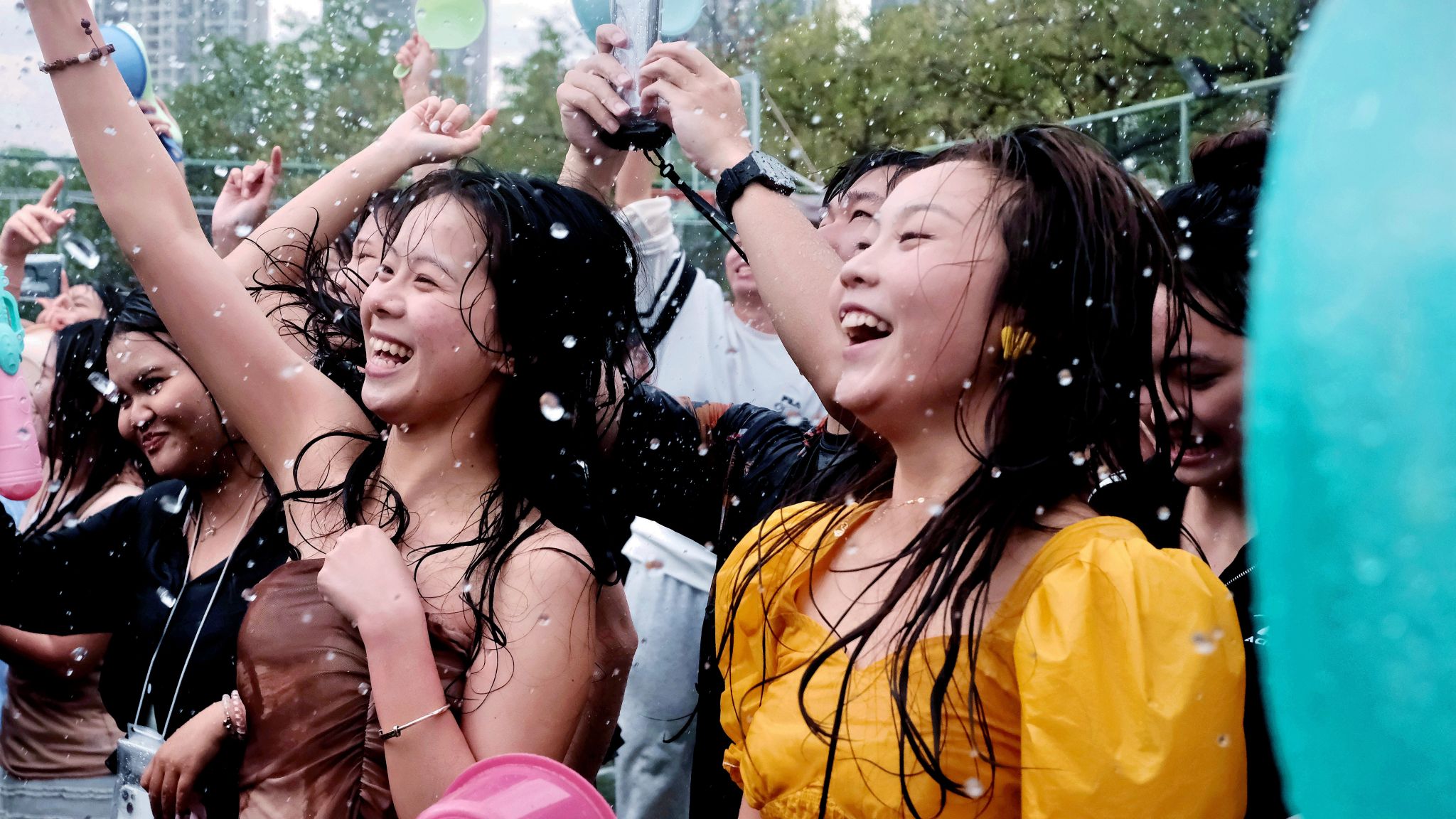 “现场的氛围太棒了!”活动现场,来自黑龙江的国际关系学院2024级新生张会哲正和朋友玩得不亦乐乎。她表示,华大的泼水节让她第一次亲身感受到了东南亚文化的魅力,“大家虽然互不相识,但在泼水的时候,我真切体会到了‘文化无国界’”。