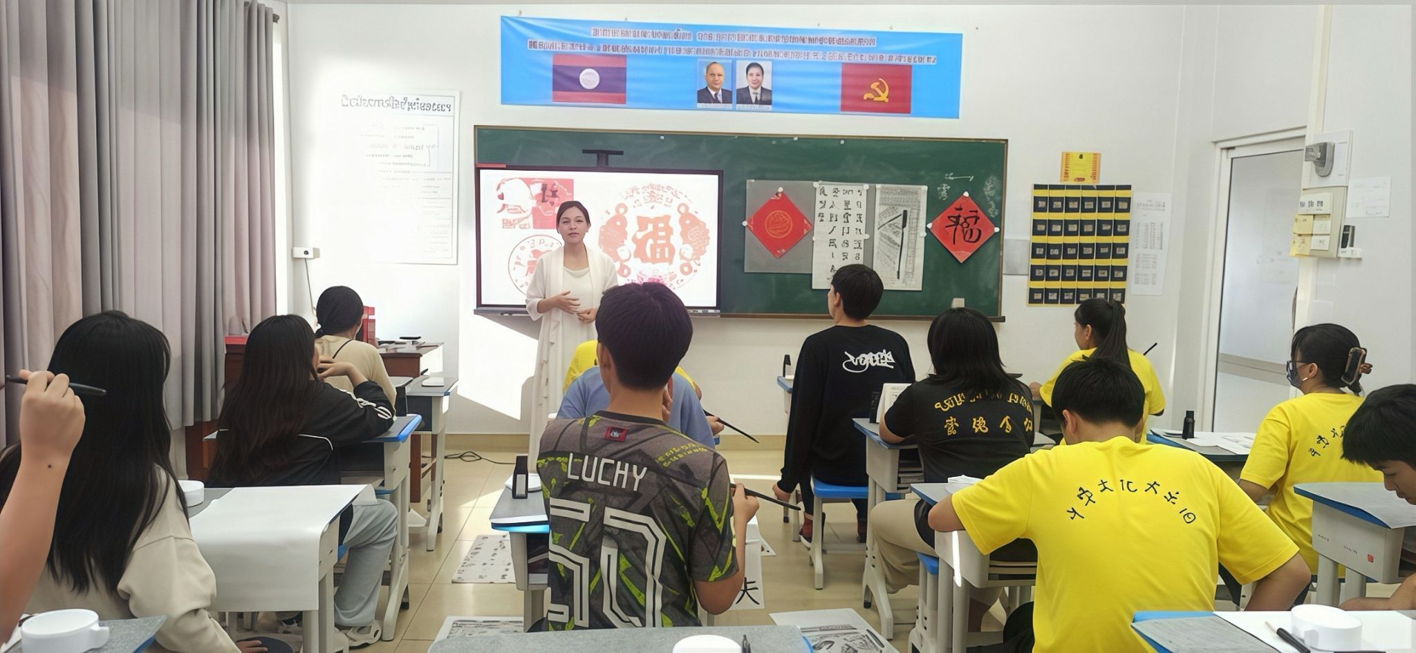 三尺讲台外,公公“诗书相生”的教诲化作跨文化桥梁。自2012年以来,我积极参与学校华文教育处、国际交流合作处等部门承办的“中华大乐园”或其它对外交流项目等文化传播活动,树立了良好的口碑,增进了海外华裔青少年对中华文化的了解。“中华大乐园”课堂上,智利华裔少年在作业视频里举着横幅,说:“笔墨里真的有妈妈说的故乡味道。”这个动人瞬间,成为文化血脉跨越山海延续的生动注脚。