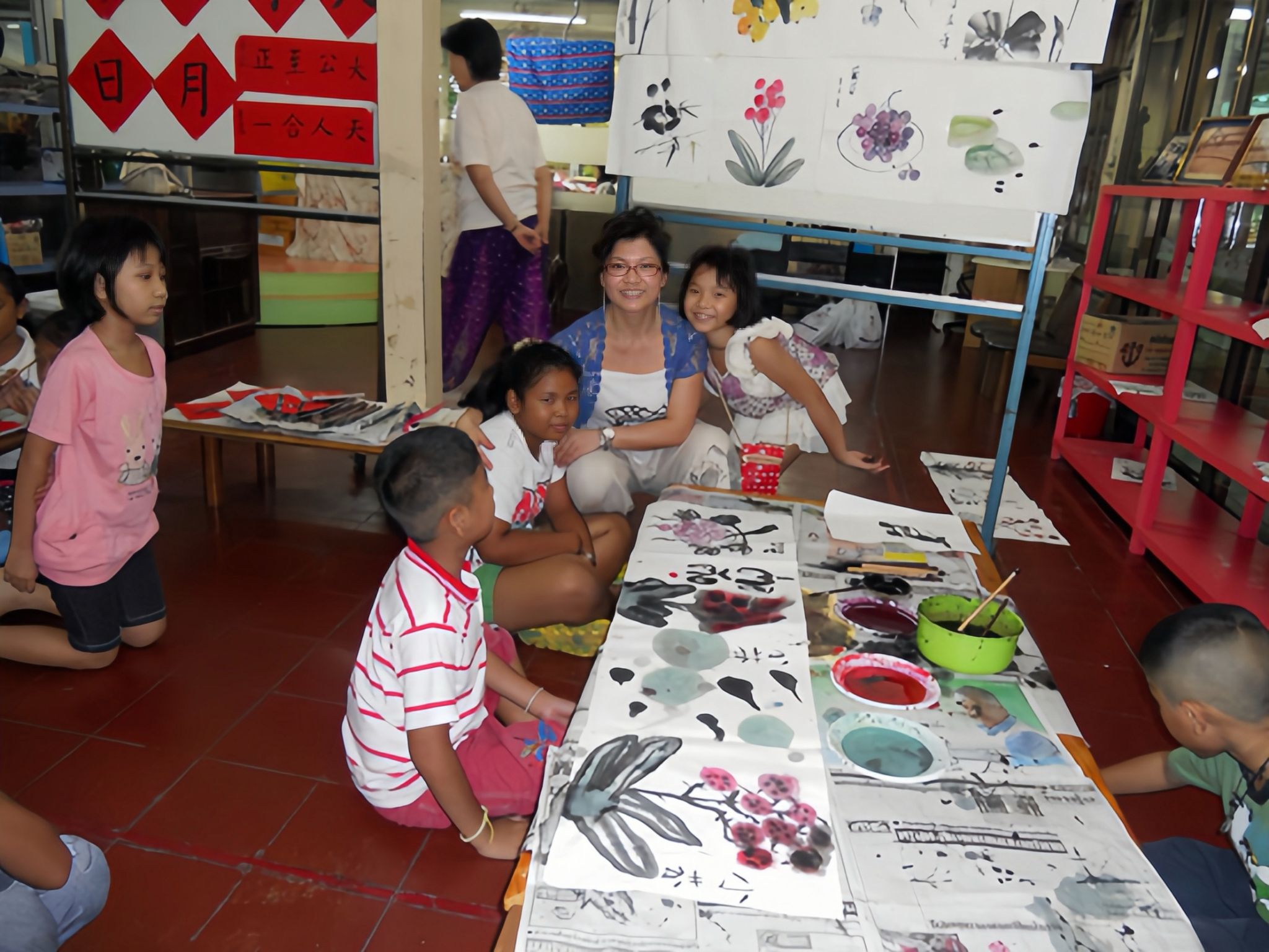 卢蓉在泰国曼谷教小朋友学习中国书画