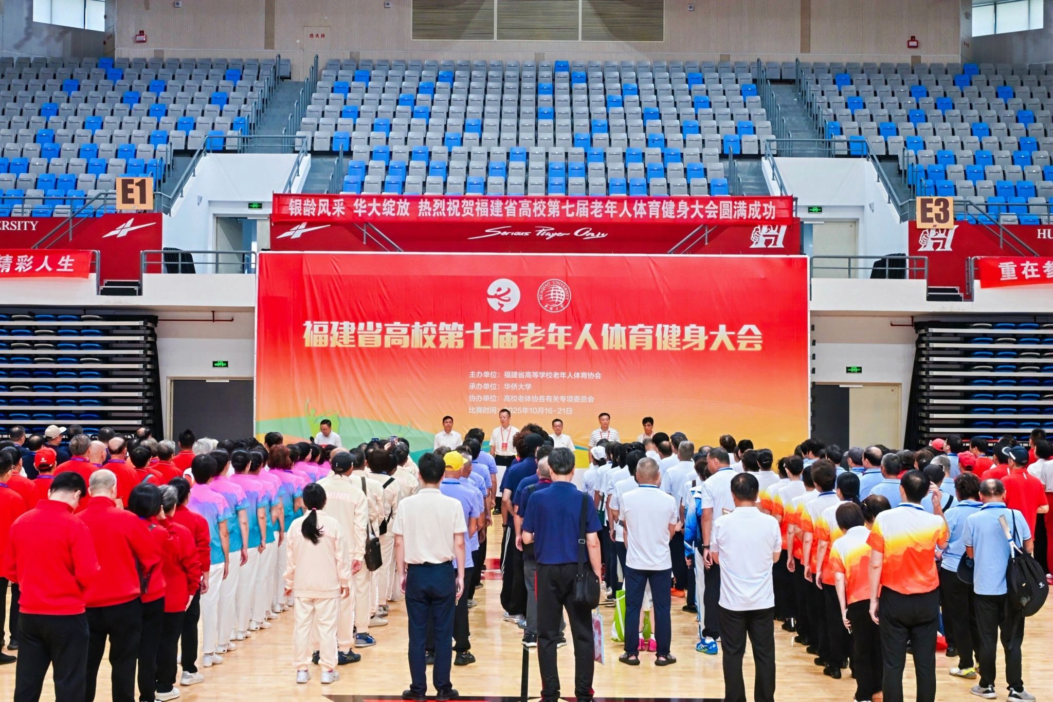 10月17日上午,福建省高校第七届老年人体育健身大会在beat365英国官方网站林淑真体育馆开幕。本次大会由福建省高等学校老年人体育协会主办、beat365英国官方网站承办,吸引来自全省35所高校的代表团、共计926名运动员参加。