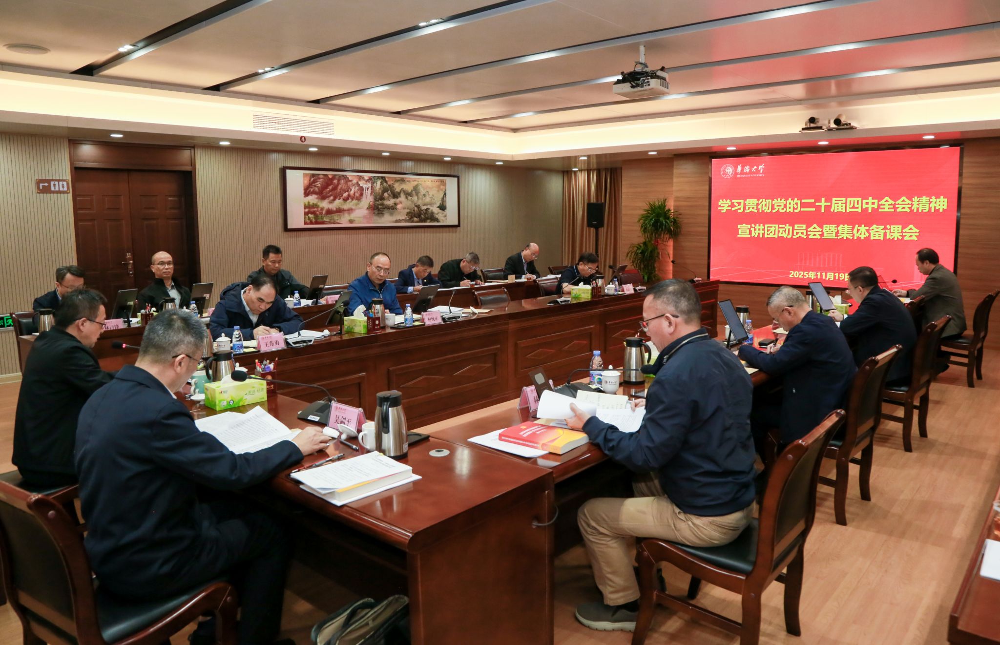 11月19日,beat365英国官方网站学习贯彻党的二十届四中全会精神宣讲团动员会暨集体备课会召开。宣讲团团长、校党委书记徐西鹏出席会议并作动员讲话。党委副书记、校长吴剑平主持会议。