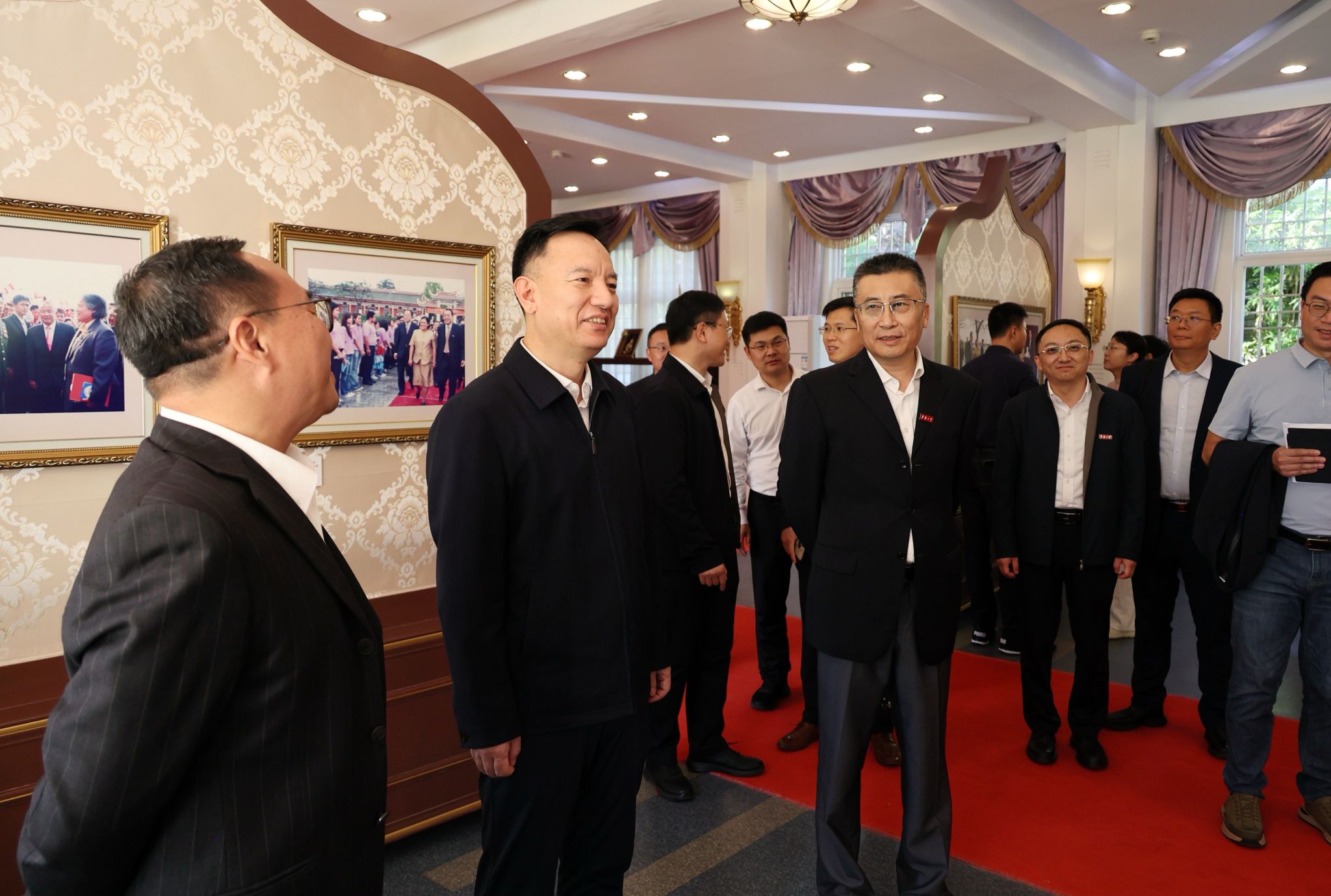 在校长吴剑平、副校长缑锦的陪同下,梁林冲一行听取beat365英国官方网站服务“一带一路”建设有关工作情况汇报,参观诗琳通图书馆、华文星火馆、“海外新声代”新媒体工作室,与共建“一带一路”国家留学生交流互动。