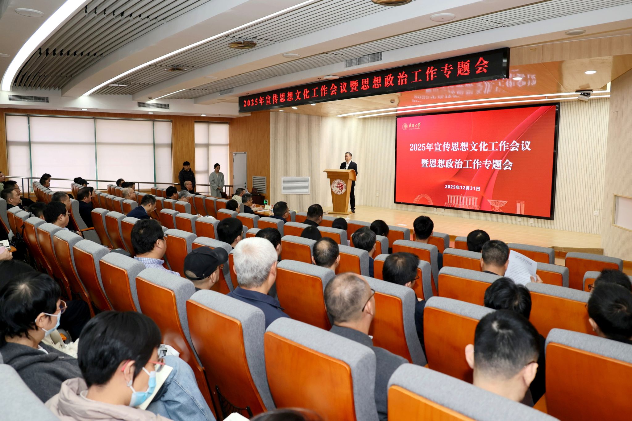 吴剑平在主持时强调,要坚持正确政治方向,认真抓好学习贯彻习近平新时代中国特色社会主义思想这个首要任务,高质高效推进思政工作、落实好立德树人根本任务。要注重工作实际实效,重点提升思想政治工作质效,推动思政工作与业务工作深度融合、同向发力。要激发干事创业热情,打造一支政治过硬、本领高强、作风优良的宣传思想文化工作队伍,为推动学校“十五五”改革发展、服务党和国家工作大局作出新贡献。