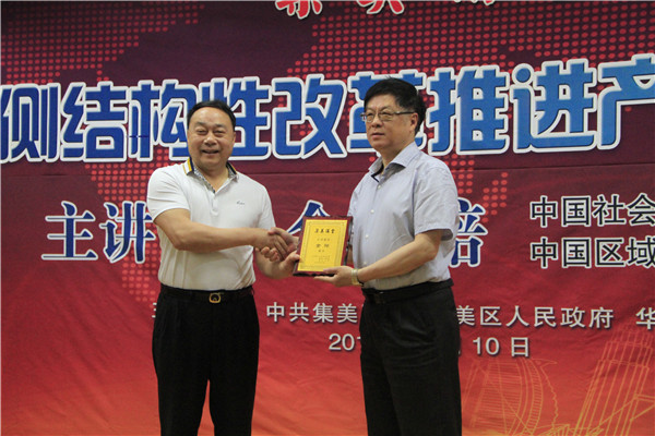 陈建荣为金碚颁发“集美讲堂”主讲嘉宾纪念牌
